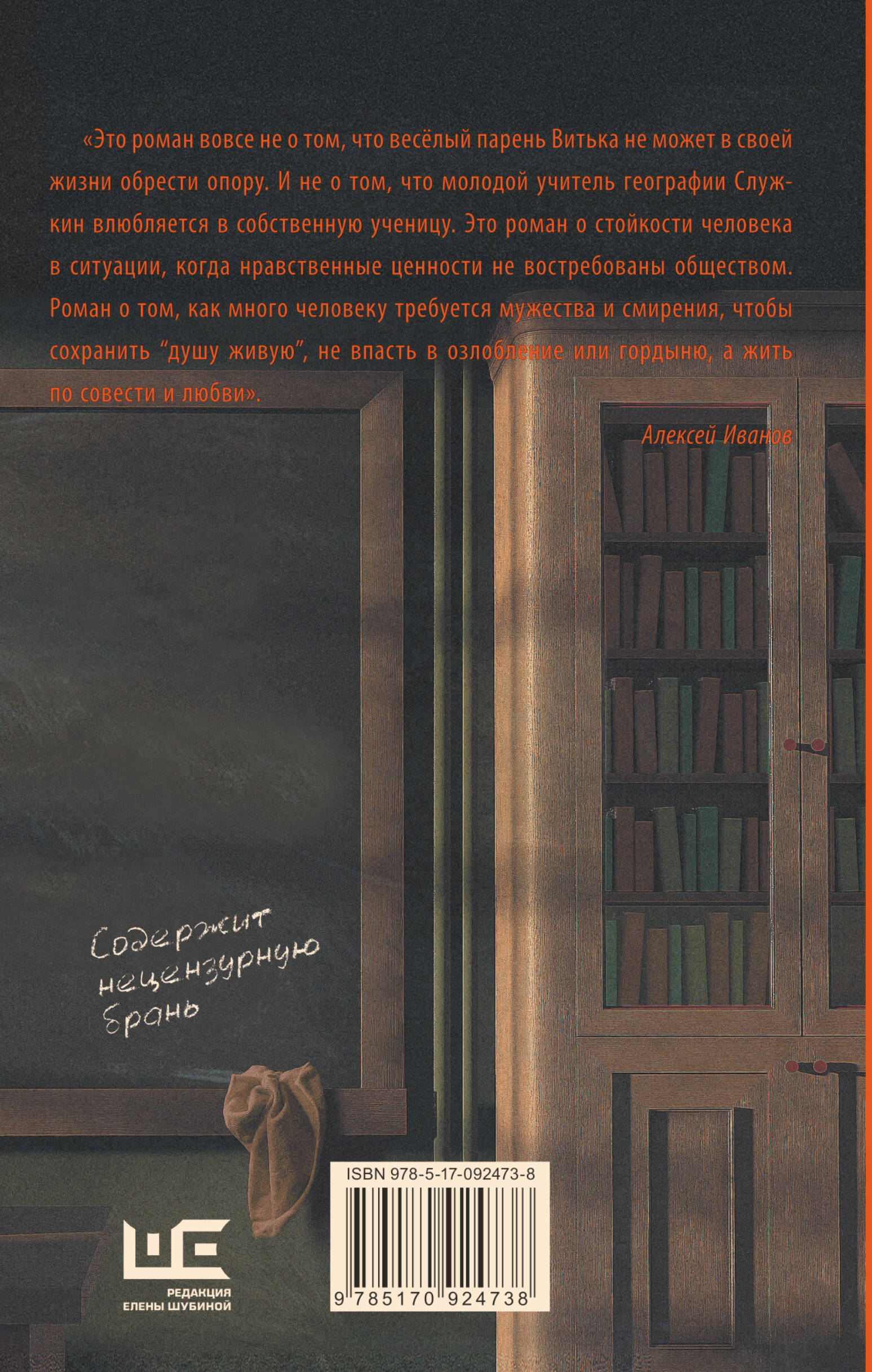 "Это роман вовсе не о том, что весёлый парень Витька не может в своей жизни обрести опору. И не о том, что молодой учитель географии Служкин влюбляется в собственную ученицу. Это роман о стойкости человека в ситуации, когда нравственные ценности не востребованы обществом. Роман о том, как много человеку требуется мужества и смирения, чтобы сохранить "душу живую", не впасть в озлобление или гордыню, а жить по совести и любви". Алексей Иванов| Издательство | Издательство "АСТ" |