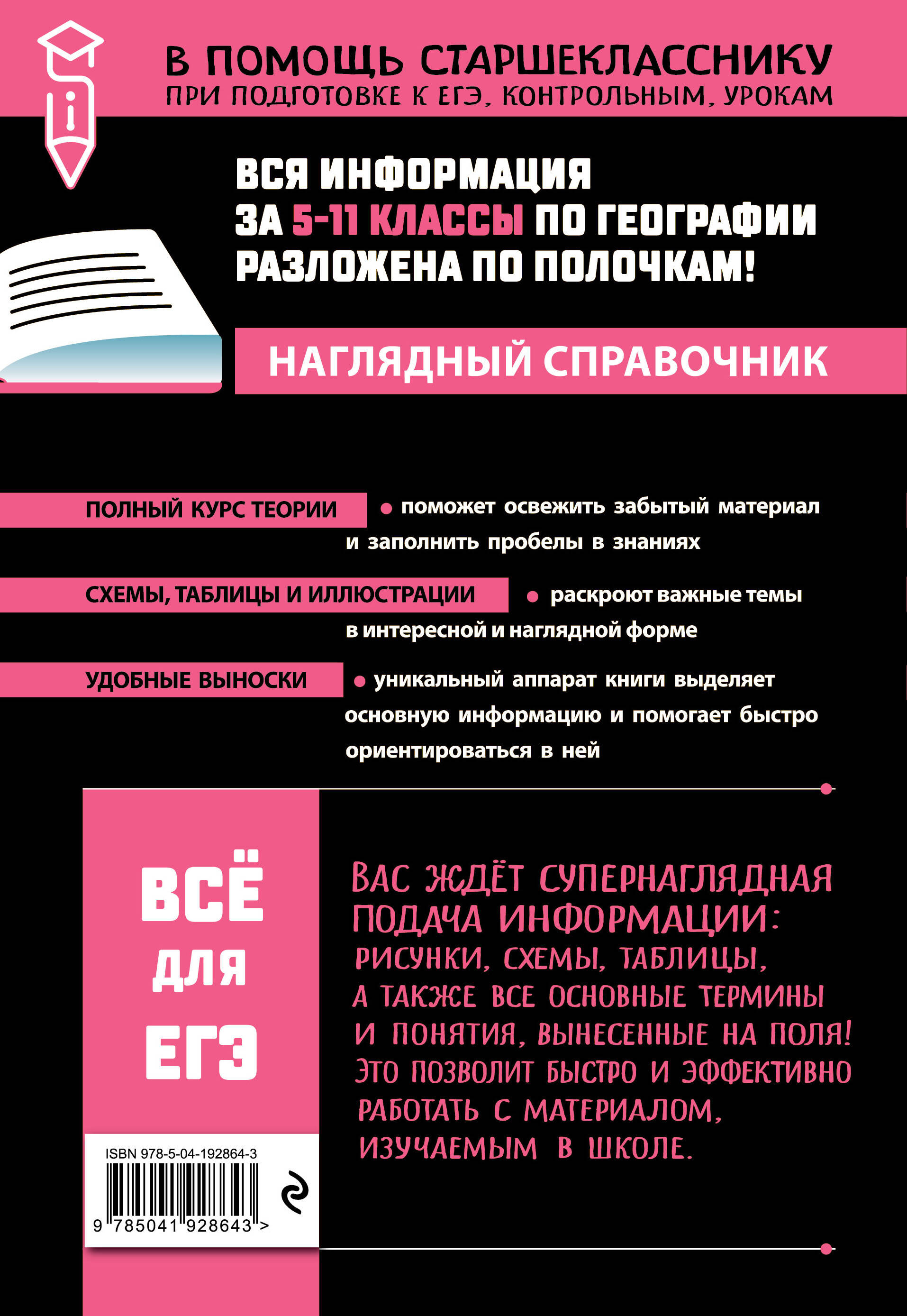 Вы готовитесь к экзаменам, перегружены информацией и не знаете, на что обратить внимание, когда каждая мелочь кажется важной? Вам поможет уникальная книга для школьников с наглядной структурой и активными полями! Она представит материал школьного курса географии за 5-11 классы в доступном изложении, а особый макет издания выделит главное и структурирует информацию для наилучшего запоминания. Активные поля обеспечат быстрый и точный поиск информации, сохраняя ваше время и увеличивая продуктивность. В справочнике вы найдете важные сведения по разделам «География как наука», «Природа Земли и человек», «Географическая оболочка Земли», «Особенности природы материков и океанов», «Население мира», «Мировое хозяйство», «Природопользование и экология», «Регионы и страны мира», «География России». Теоретические блоки сопровождаются иллюстрациями, схемами и таблицами для комплексной подготовки к ОГЭ и ЕГЭ по географии. Пособие создано для старшеклассников, которые ценят качество, удобство, а также эффективность в ходе учебного процесса. Помимо этого, оно будет полезно и абитуриентам при поступлении в вузы, и учителям при проведении занятий и экзаменов.| Издательство | ООО "Издательство "Эксмо" |