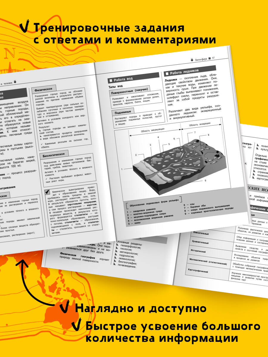 Справочник содержит важные материалы, которые помогут даже в сжатые сроки подготовиться к урокам, ОГЭ и ЕГЭ по географии. Теория изложена в наглядной форме и дополняется блоком практических заданий c ответами для комплексного закрепления знаний. Информация представлена в максимально удобной и эффективной для изучения и запоминания форме - в схемах и таблицах, что обеспечит плодотворную и быструю подготовку к урокам, контрольным и различным экзаменам. В пособии можно найти все основные разделы предмета: «География как наука», «Природа Земли и человек», «Население мира», «Мировое хозяйство», «Природопользование и экология», «Регионы и страны мира», «География России». В справочнике ученики 5-11 классов найдут много полезного для своего образования. Он станет незаменимым помощником для всех, кто хочет подтянуть свои знания или вспомнить уже изученные темы, подготовиться к урокам и экзаменам, а также будет прекрасным дополнением к учебнику и просто облегчит процесс учебы.| Издательство | ООО "Издательство "Эксмо" |
