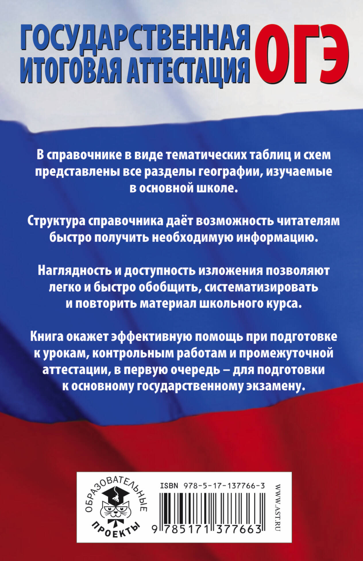 В пособии в виде доступных схем и таблиц представлены все темы курса географии, проверяемые на основном государственном экзамене. Краткая и наглядная форма изложения позволяет систематизировать изучаемый материал, облегчает его усвоение и запоминание. Книга окажет учащимся эффективную помощь при изучении новых и повторении пройденных тем и подготовке к различным видам аттестации, включая ОГЭ.| Издательство | АСТ |