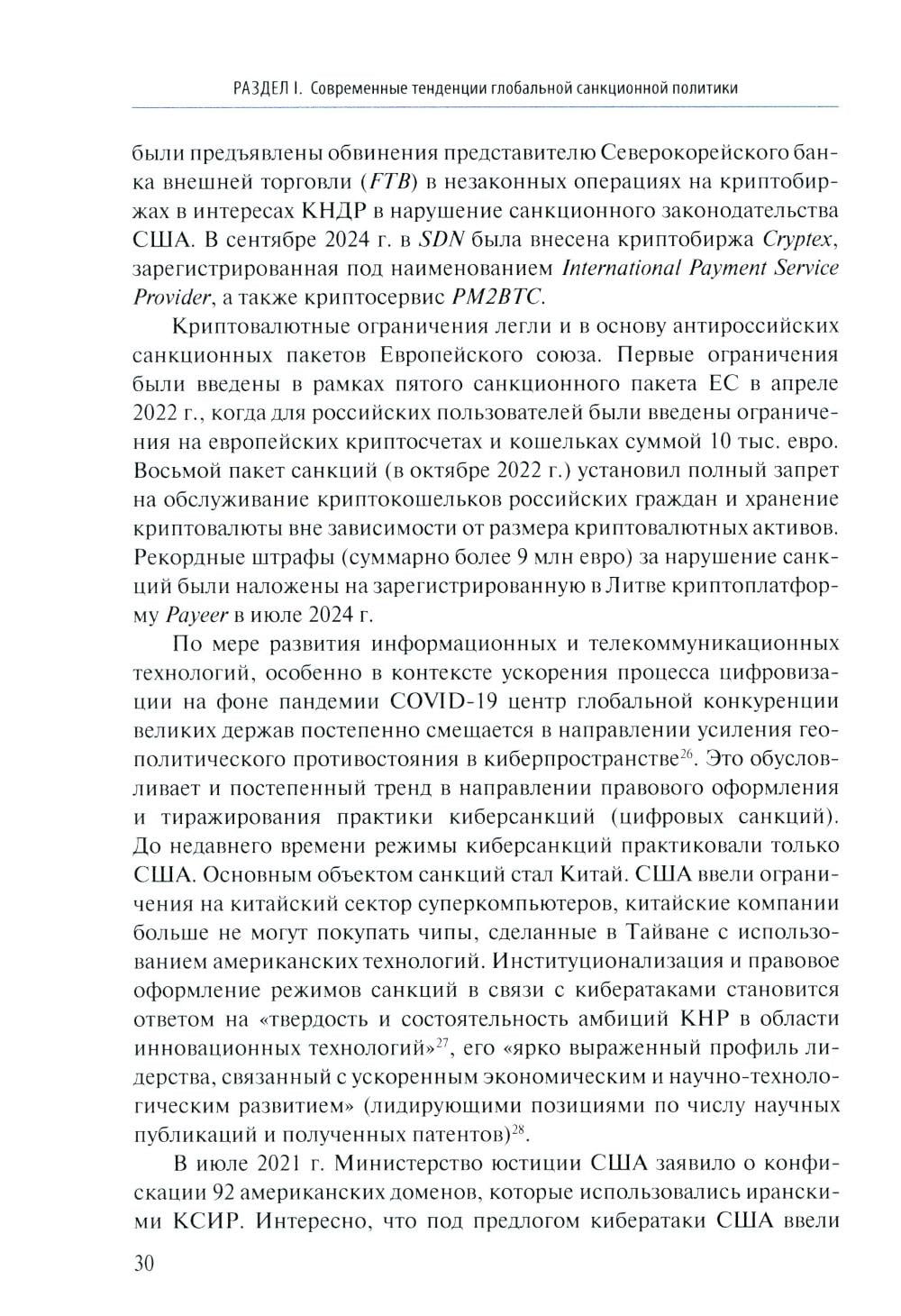 Монография посвящена всестороннему анализу трансформации глобальной санкционной политики в условиях новой геоэкономической реальности. Рассматриваются эволюция санкционного инструментария, цикличность санкционных практик, целеполагание, а также влияние санкций на финансовые рынки, валютные курсы и гуманитарную сферу. Особое внимание уделено киберсанкциям и феномену вторичных санкций, их правовым, экономическим и политическим аспектам. Анализируются международная реакция на санкционное давление в отношении России, поведение политических элит и бизнеса, степень их лояльности к сотрудничеству с российскими партнерами и готовность адаптироваться к новым условиям. Работа опирается на практические кейсы и предлагает глубокий геоэкономический анализ. Для специалистов в области международных отношений и мировой экономики, студентов и аспирантов вузов, занимающихся внешнеполитическими, политэкономическими исследованиями, изучением влияния санкций и торговых войн на международную экономику и политику.| Издательство | Аспект-Пресс |