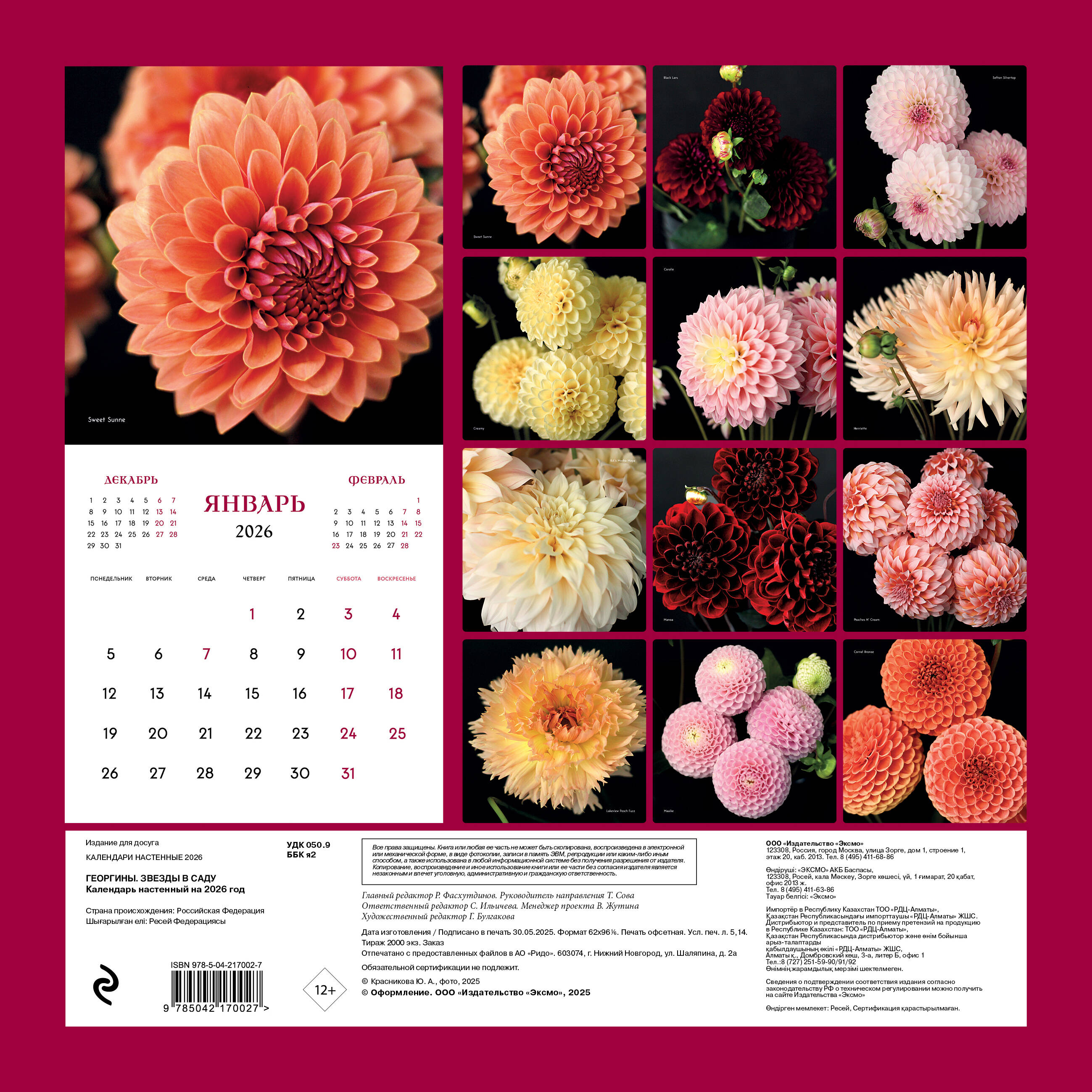 Аннотация: Георгины. Звезды в саду. Календарь настенный на 2026 год (300х300 мм)