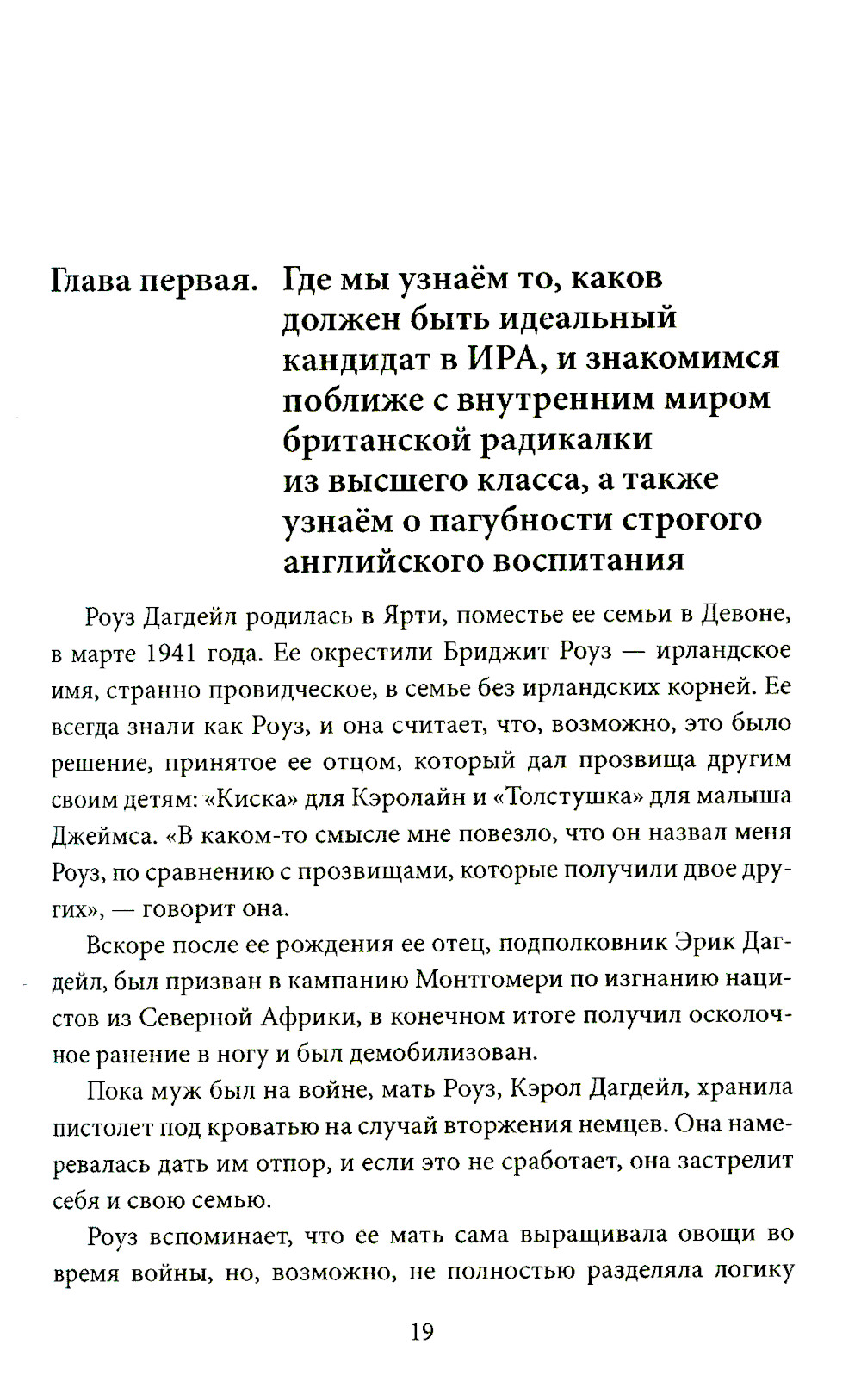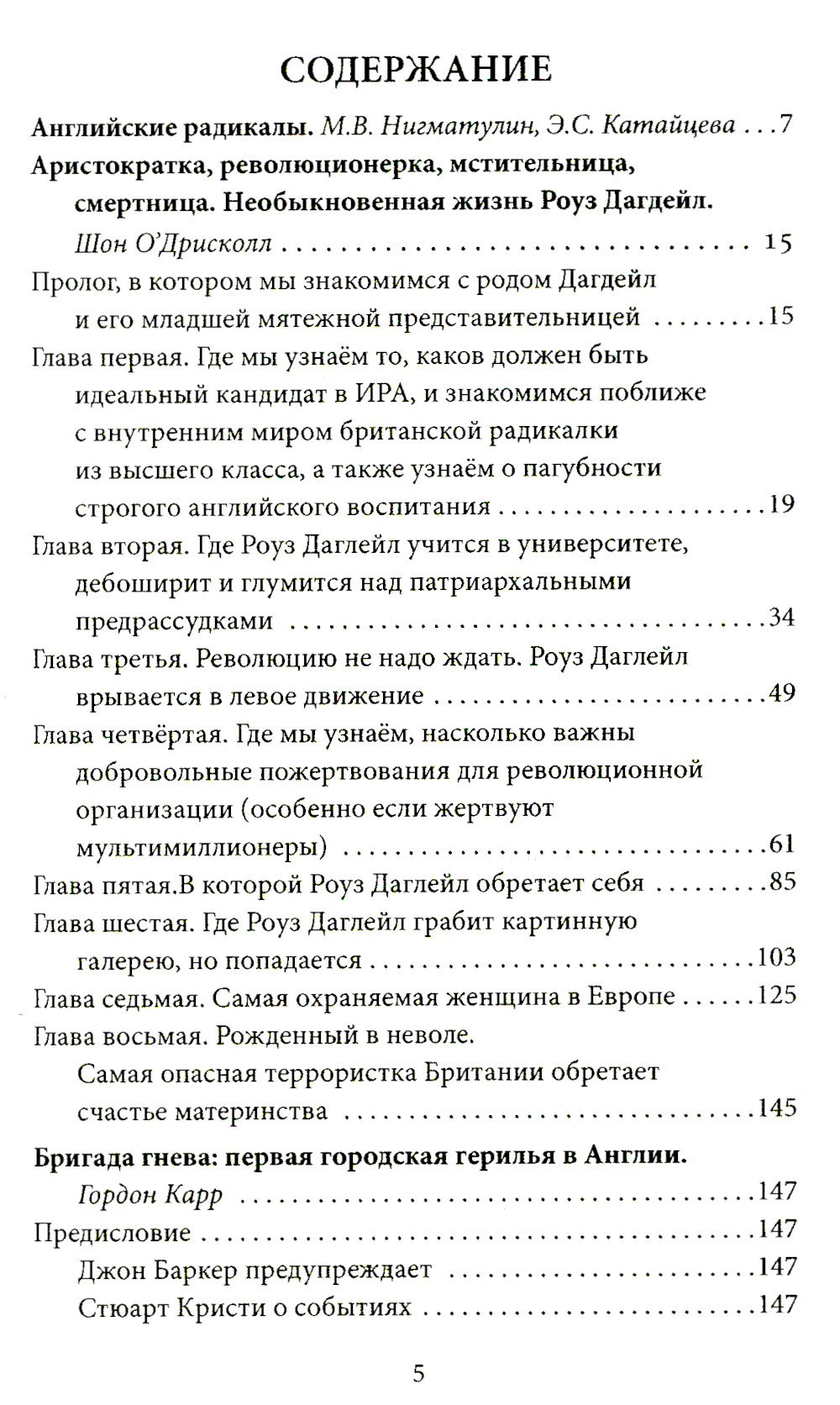 Многие склонны считать Англию страной консервативной, сонной, не склонной к радикализму. Во многом легендарные молодежные бунты 1960-х обошли эту землю стороной. Тем не менее, и у англичан имеются свои собственные примеры удивительного мужества, тяги к борьбе против капитализма, верности революционным и освободительным идеалам. Эта книга рассказывает о том, как британские радикалы (часто происходившие из аристократических семейств) бросали всё и уходили в подполье. Особое внимание авторы уделяют историям «Бригады гнева» (первой настоящей городской герильи в Англии) и Роуз Дагдейл - английской аристократки, вступившей в ИРА и всю свою жизнь посвятившей вооруженной борьбе за свободу Ирландии.