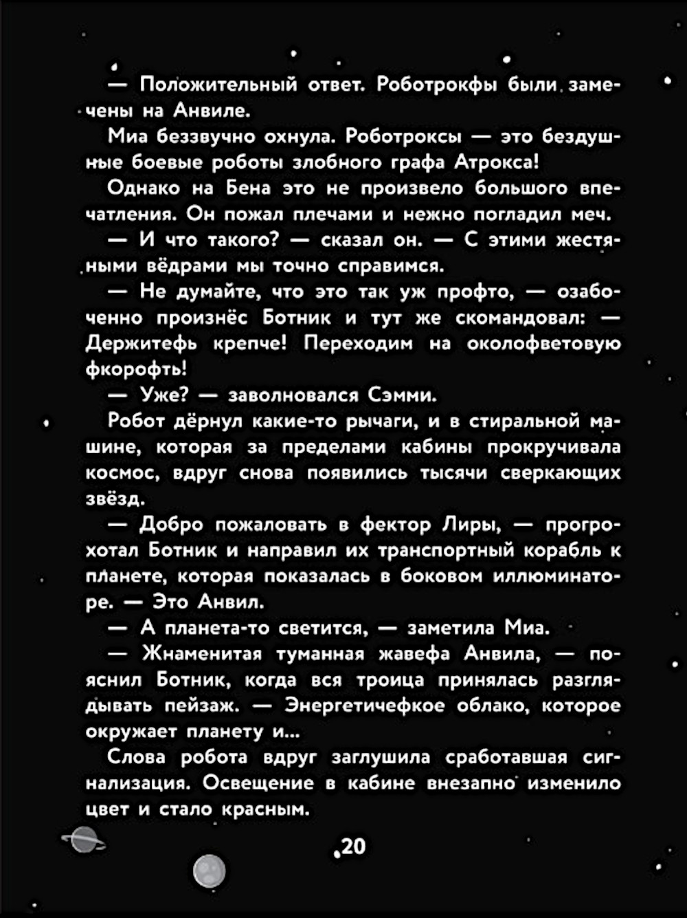 Безжалостные пираты, дерзкий план и начало великой дружбы! Их зовут Бен, Сэмми и Миа. На Земле это обычные школьники. А в другом измерении они - стражи Галактики, сражающиеся со зловещим графом Атроксом за правду, справедливость и за Звёздный Свет. Тревога! Роботроксы были замечены на мирной планете Анвил! Они охотятся за таинственной Книгой Звёзд. Юные герои отправляются на своё первое задание. Смогут ли они победить свой страх и спасти планету от уничтожения?