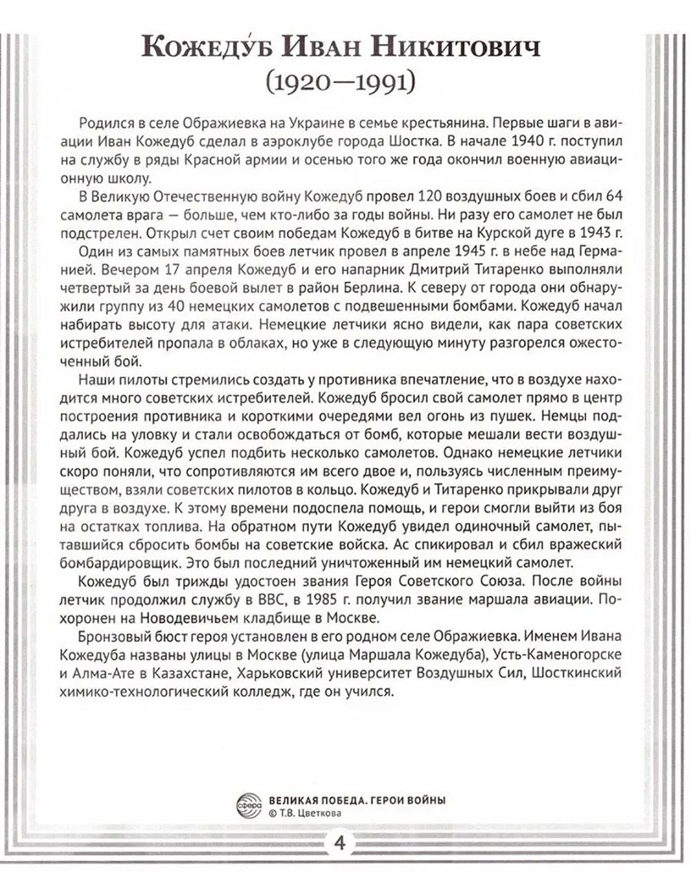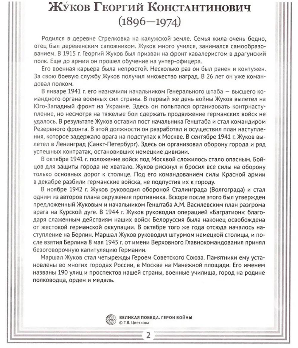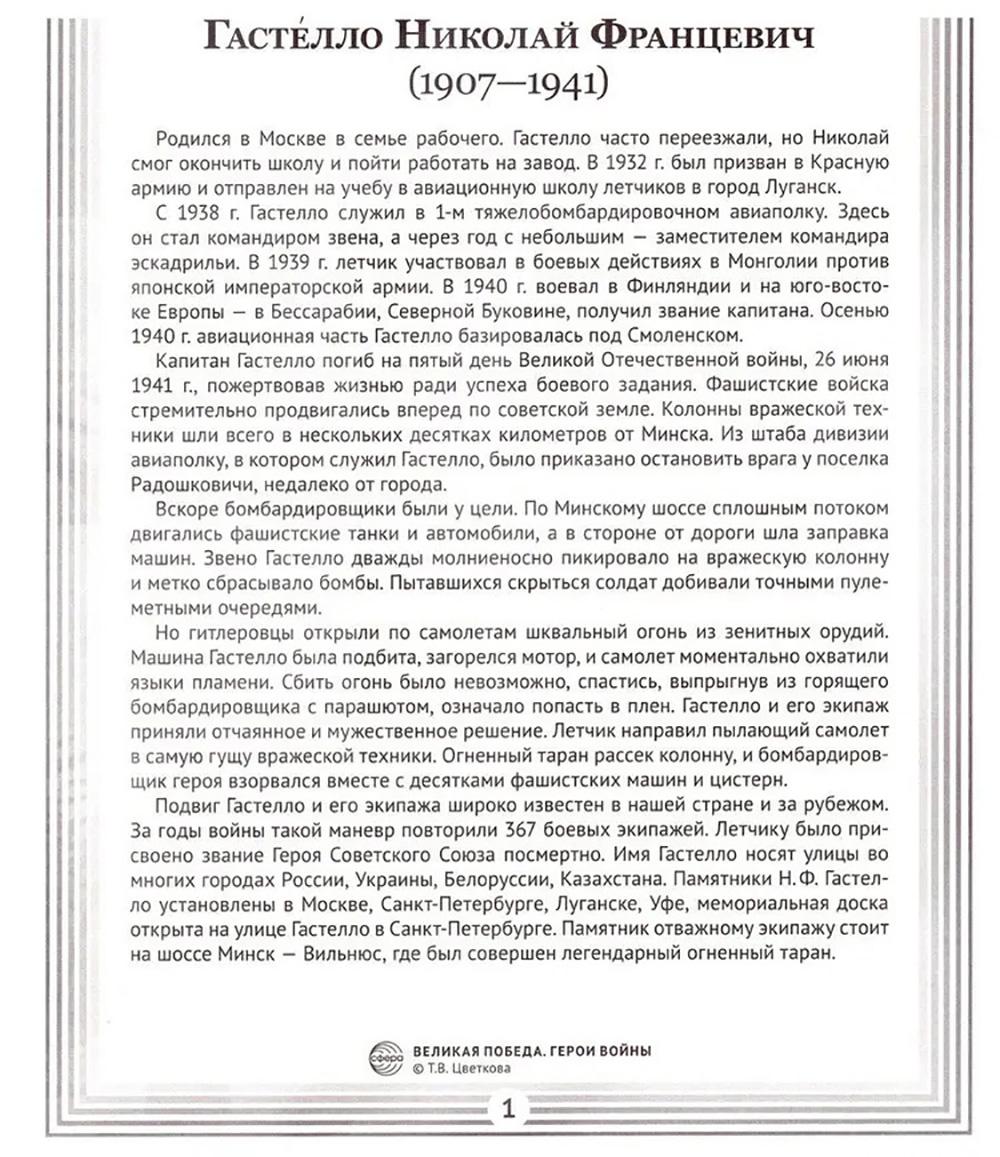 Комплект «Герои войны» - это коллекция материалов, посвящённая 16 самым известным Героям Советского Союза. Эти люди совершили настоящий подвиг ради своей страны и отдали все силы на борьбу с захватчиками в годы Великой Отечественной войны (1941-1945). В комплект входят: - лаконичные тексты с биографиями героев; - информация о сражениях и военных операциях, в которых участвовали герои; - выводы о значении подвига каждого героя для победы нашей страны; - фотографии героев. Пособие поможет детям 6-14 лет лучше понять историю своей страны, узнать о подвигах предков и гордиться ими. Картинки делают рассказ образным и интересным, помогают детям лучше представить себе события тех лет. Используйте пособие на уроках мужества, истории или классных часах. Дайте детям возможность узнать больше о героях и событиях Великой Отечественной войны!| Издательство | Творческий центр Сфера |