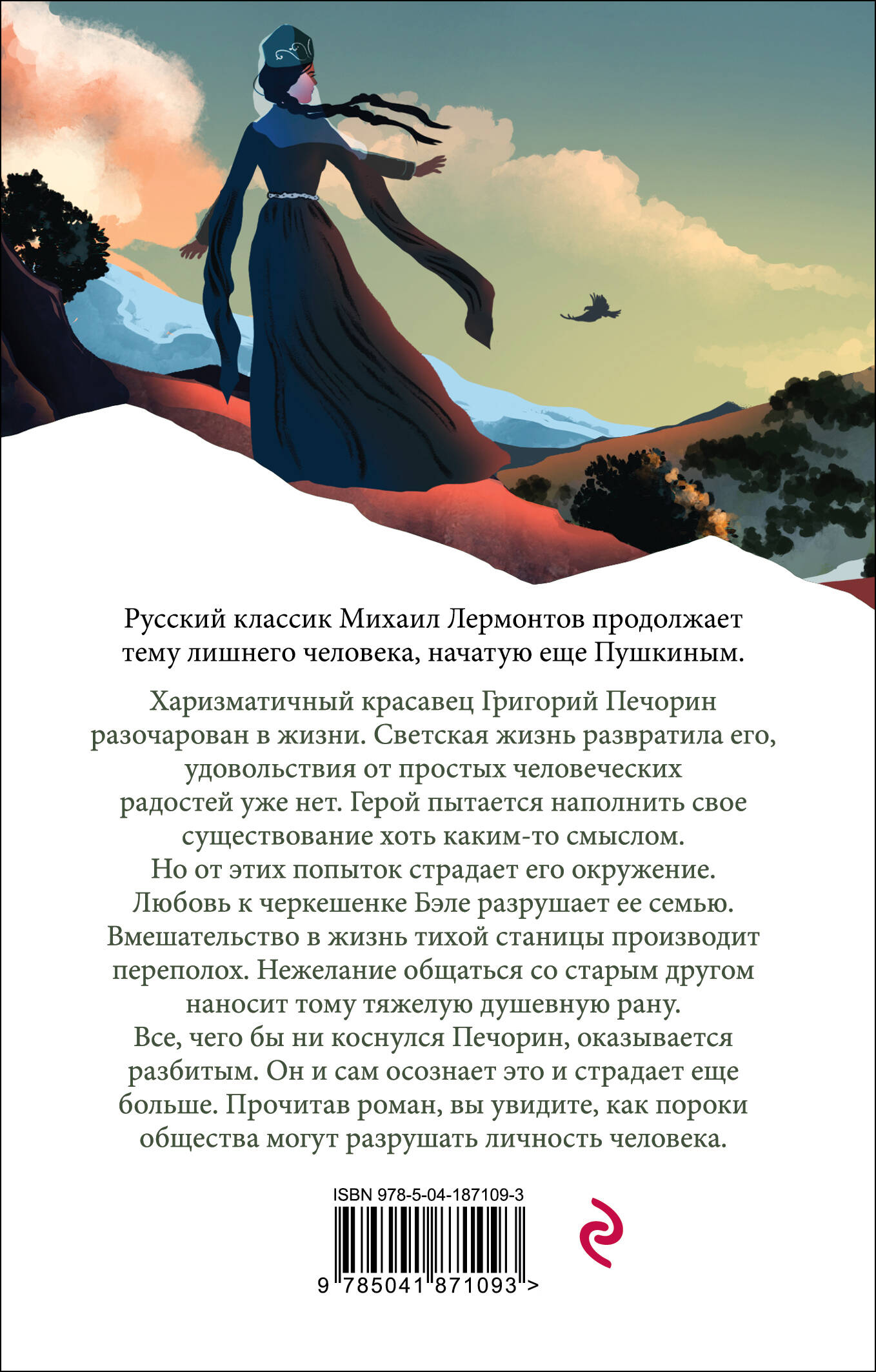Русский классик Михаил Лермонтов продолжает тему лишнего человека, начатую еще Пушкиным. Харизматичный красавец Григорий Печорин разочарован в жизни. Светская жизнь развратила его, удовольствия от простых человеческих радостей уже нет. Герой пытается наполнить свое существование хоть каким-то смыслом. Но от этих попыток страдает его окружение. Любовь к черкешенке Бэле - разрушает ее семью. Вмешательство в жизнь тихой станицы - производит переполох. Нежелание общаться со старым другом - наносит тому тяжелую душевную рану. Всё, чего бы ни коснулся Печорин, оказывается разбитым. Он и сам осознаёт это и страдает еще больше. Прочитав роман, вы увидите, как пороки общества могут разрушать личность человека.| Издательство | ООО "Издательство "Эксмо" |