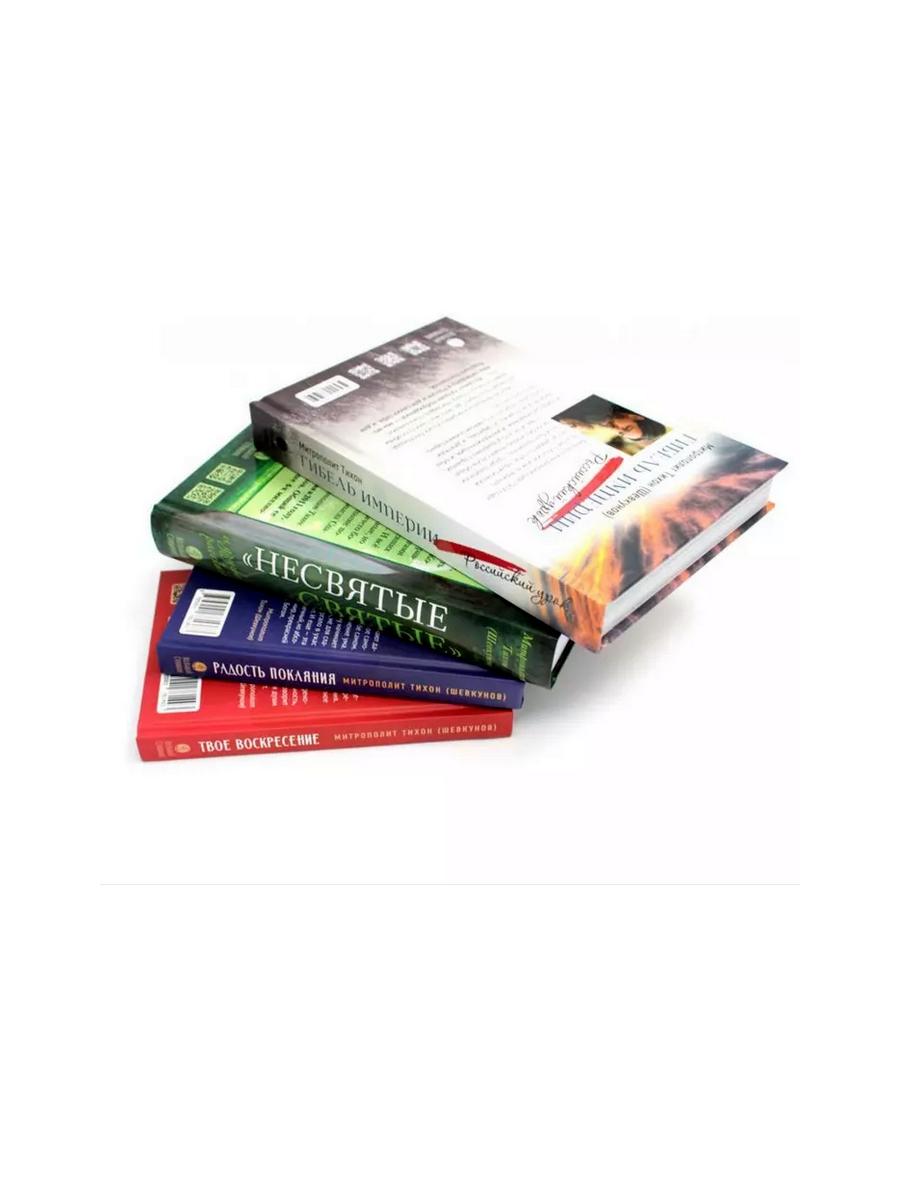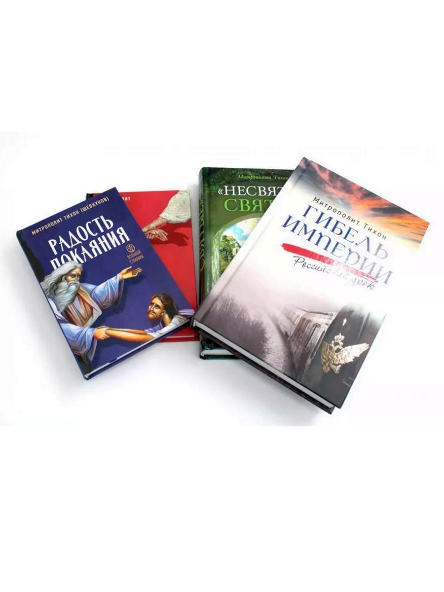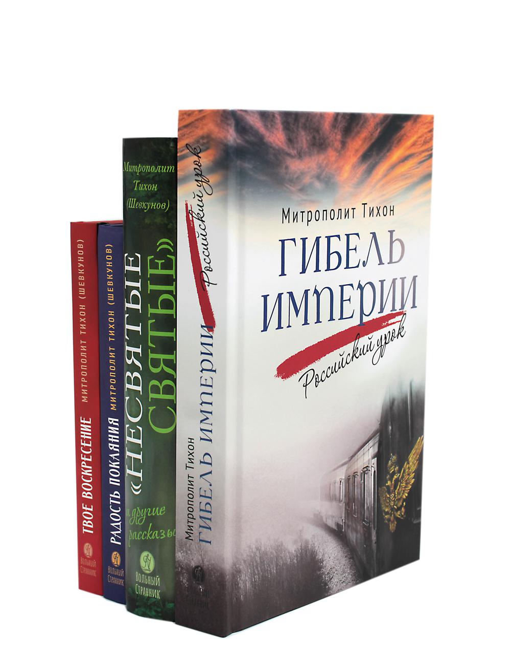 В данный комплект входят четыре книги митрополита Тихона (Шевкунова). В книге «Гибель империи. Российский урок» вы узнаете о том, что гибель могущественной Российской империи, построенной за многие века поколениями наших предков и сгинувшей за считаные дни, - трагический и в то же время бесценный урок для наших соотечественников на все времена. Эта книга не только о Февральской революции 1917 года. Она о механизмах, формирующих катаклизмы в России. Хотя исследования автора основаны на внушительном пласте научных источников, книга буквально захватывает читателя с первой страницы, предоставляя множество ошеломляющих фактов, снабжая актуальными материалами для плодотворных размышлений. В «Несвятых святых и других рассказах» пойдет речь о том, что один подвижник как-то сказал, что всякий православный христианин может поведать свое Евангелие, свою Радостную Весть о встрече с Богом. Конечно, никто не сравнивает такие свидетельства с книгами апостолов, своими глазами видевших Сына Божия, жившего на земле. И всё же мы, хоть и немощные, грешные, но Его ученики, и нет на свете ничего более прекрасного, чем созерцание поразительных действий Промысла Спасителя о нашем мире. В «Радости покаяния» речь идет о том, что пост - время свободы и радости духовной, время освобождения от греховных привычек - всего того лишнего, бесполезного, чуждого человеческой душе, но так прочно укоренившегося в ней. Церковь каждый год заботливо подводит нас к времени Великого поста и так же бережно ведет нас день за днем в течение этого спасительного времени: от греха - к покаянию, от духовной смерти - к воскресению души. В основе этой книги - проповеди и выступления митрополита Псковского и Порховского Тихона (Шевкунова). В них читатель найдет важные мысли о смысле человеческой жизни, о том, чего Бог ожидает от каждого из нас, о Промысле Божием, о подготовке и должном проведении великопостного времени, о покаянии и хранении себя от греха, о молитве. И о смирении, без которого все, даже самые суровые, подвиги не принесут пользы душе, без которого не сможет быть достигнута главная цель жизни христианина - единение с Богом. Новая книга митрополита Тихона (Шевкунова) «Твое Воскресение» посвящена величайшему событию, перевернувшему всю историю человечества, - Воскресению Христову. Вместе с автором и всей Церковью читатель сможет пройти путь от Светлого Христова Воскресения до дня Святой Троицы и отследить, как распространялась по Земле эта величайшая радость: от Сионской горницы до сердца каждого из нас. Речь пойдет и о вере апостола Фомы, и о смиренной любви Жен Мироносиц, об исцелении расслабленных наших душ, о простоте самарянки, которая всем сердцем искала Бога и обрела источник вечной жизни, о мужестве и мудрости слепорожденного. Вместе переживем и Вознесение Господне, отпразднуем день рождения Церкви - праздник Святой Троицы, вспомним схождение на апостолов Святого Духа Божия. Основанные на многовековом опыте Церкви и святых отцов объяснения владыки Тихона - лаконичные и живые, актуальные и современные. Размышления о столь важных понятиях христианской жизни интересны не только в пасхальный период, но полезны для чтения каждый день.| Издательство | Вольный Странник |