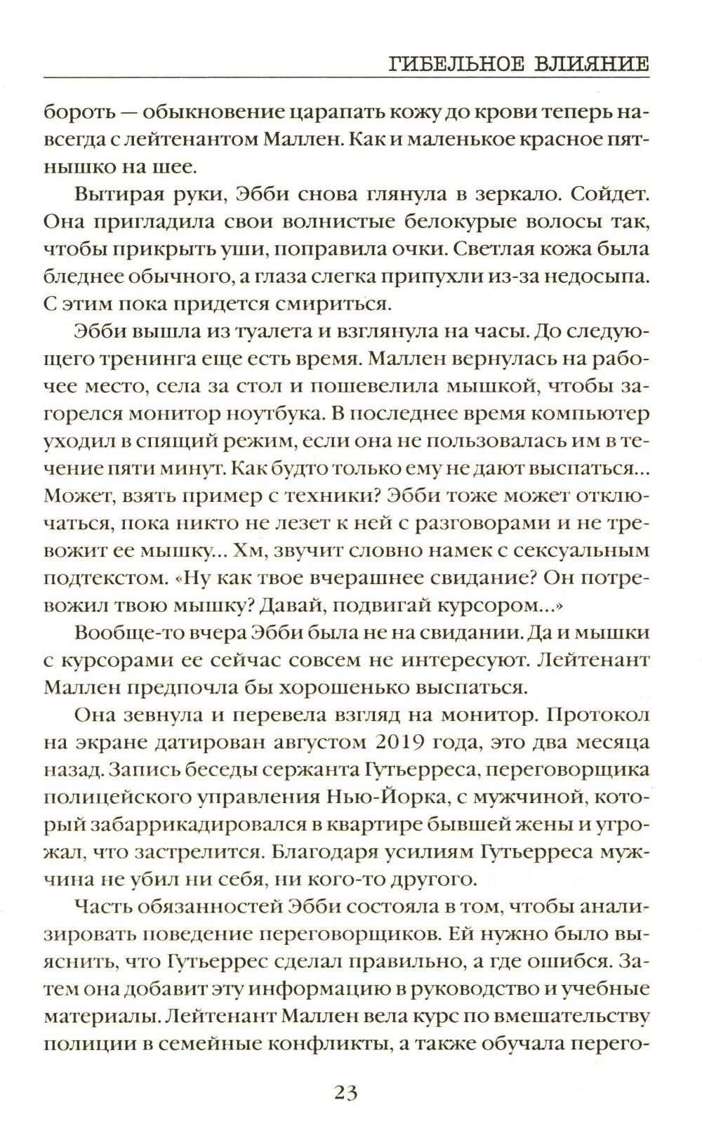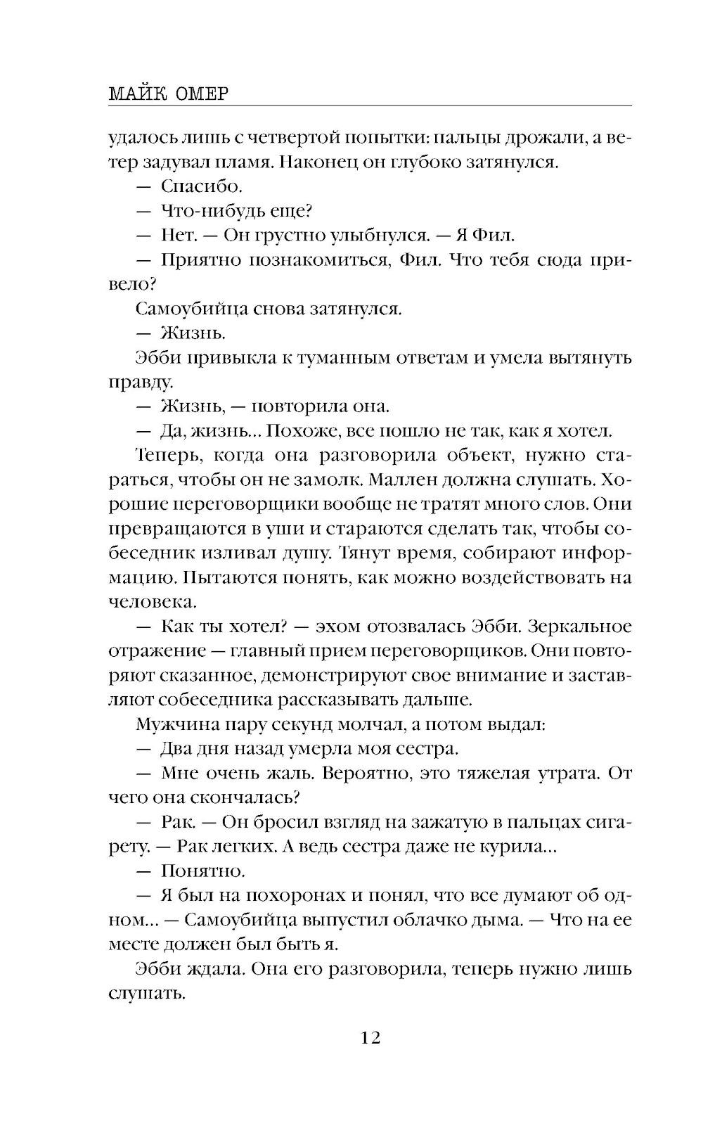 Лейтенант полиции Нью-Йорка Эбби Маллен - психолог-переговорщик. За считанные секунды ей нужно найти единственно верные слова, чтобы вооруженный убийца не спустил курок. А для этого - составить его психологический профиль, имея минимум информации. Эбби - как профайлер, только быстрее и круче. Она готова ко всему. Но не к этому... Ей позвонила Иден Флетчер. Еще девочками они жили в одной печально известной секте - до той ночи, когда ее лидер Уилкокс сжег заживо всех членов общины. Выжили лишь трое, в том числе и они. И вот спустя много лет Иден нашла подругу детства и просит о помощи: кто-то похитил ее сына и требует выкуп - целых 5 миллионов долларов! В поисках зацепок Эбби пытается понять: почему похититель выбрал именно Иден, Но та явно что-то недоговаривает. Например, о возможных мотивах преступника. И о том, что делает в ее доме портрет Уилкокса. Иден даже скрывает, что с ней случилось после той трагической огненной бойни. Постепенно Эбби понимает: жуткое прошлое, которое она так старательно пыталась забыть, хитрым путем возвращается к ней.