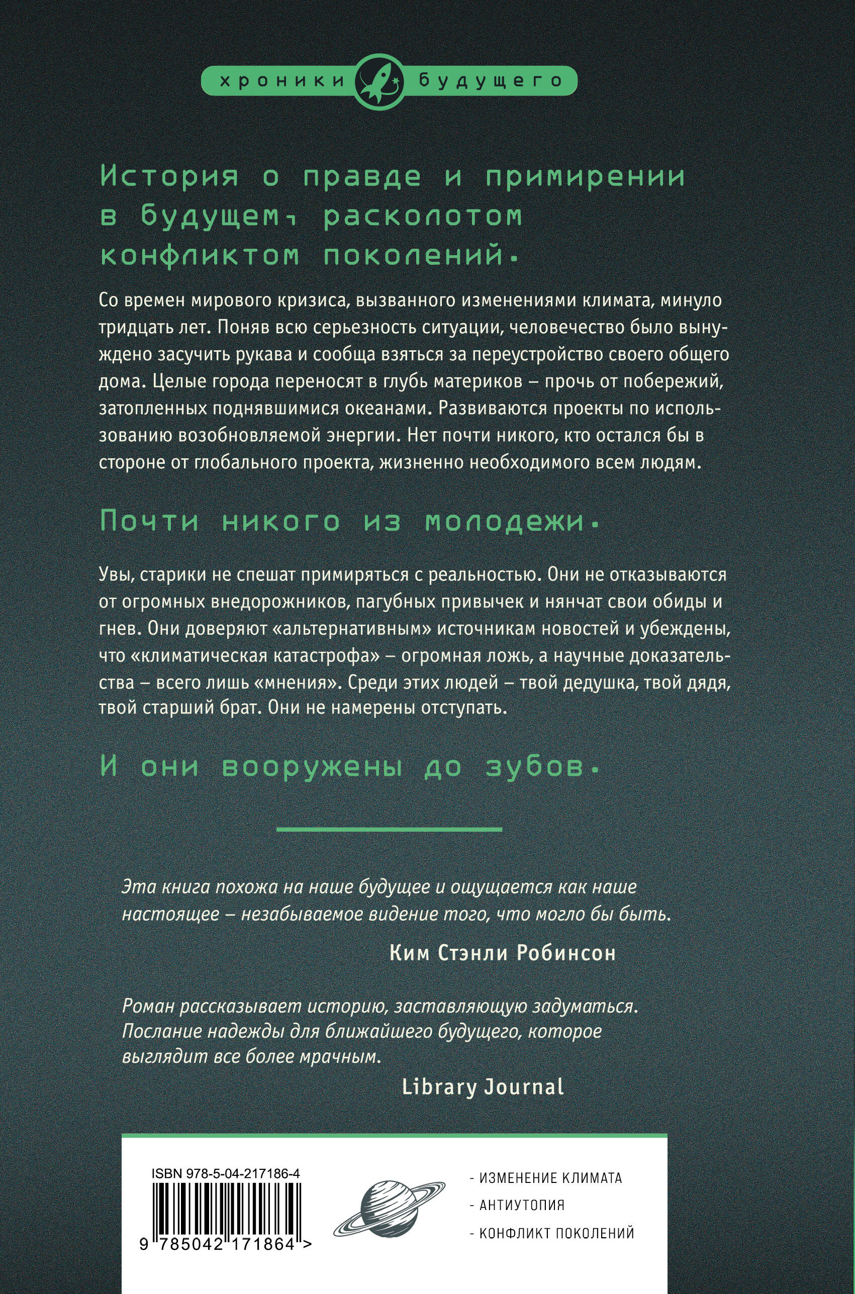 Прошло тридцать лет. Мы медленно, но верно смягчаем последствия изменения климата. Но как быть со всеми этими сердитыми стариками, которые никак не могут смириться с наступившим будущим? Для молодых людей изменение климата не будет являться предметом спора. Это просто непреодолимый факт жизни. Грубая реальность. Целые города переносятся вглубь материка из-за повышения уровня моря. Повсюду возникают грандиозные проекты по использованию возобновляемой энергии. Приемы оказания помощи при стихийных бедствиях, ликвидация последствий наводнений и суперштормов стали навыками, которым ежегодно обучаются миллионы людей. Эта деятельность носит глобальный характер. В ней заняты все, кто хочет работать. Даже когда ультраправые политики вновь захватывают лидерство, движущая сила слишком велика; эти масштабные программы невозможно быстро поставить на «стоп». Но есть еще представители предыдущего поколения, которые цепляются за свои красные бейсболки, свои обиды, свои огромные внедорожники, свой гнев. Их «альтернативные» источники новостей уверяют, что недовольство справедливо и обоснованно, а «изменение климата» - всего лишь гигантская афера «левых». И это - ваш дедушка, ваш дядя, ваша двоюродная бабуля. Они не отдадут власть просто так. И они вооружены до зубов. «Гиблое дело» задает вопрос: как поступить с людьми, которые цепляются за веру в то, что их собственные дети - враги? В то время как они сами часто оказываются теми самыми старшими в семье, которых мы любим? «Совершенно восхитительно… Ни утопично, ни антиутопично, роман изображает жизнь в будущем, сотканном из наших успехов (Новый Зеленый курс!), неудач (оставшийся климатический хаос) и неразрешенных конфликтов (старики, что все так же горят желанием вернуть Америке былое величие). Мне понравилось». - Ребекка Солнит «Эта книга похожа на наше будущее и ощущается как наше настоящее - незабываемое видение того, что могло бы быть». - Ким Стэнли Робинсон «Иногда мне кажется, что Кори Доктороу - последний настоящий оптимист и идеалист, оставшийся в научной фантастике». - Locus «Роман рассказывает историю, заставляющую задуматься, с посланием надежды в ближайшем будущем, которое выглядит все более мрачным». - Library Journal| Издательство | ООО "Издательство "Эксмо" |