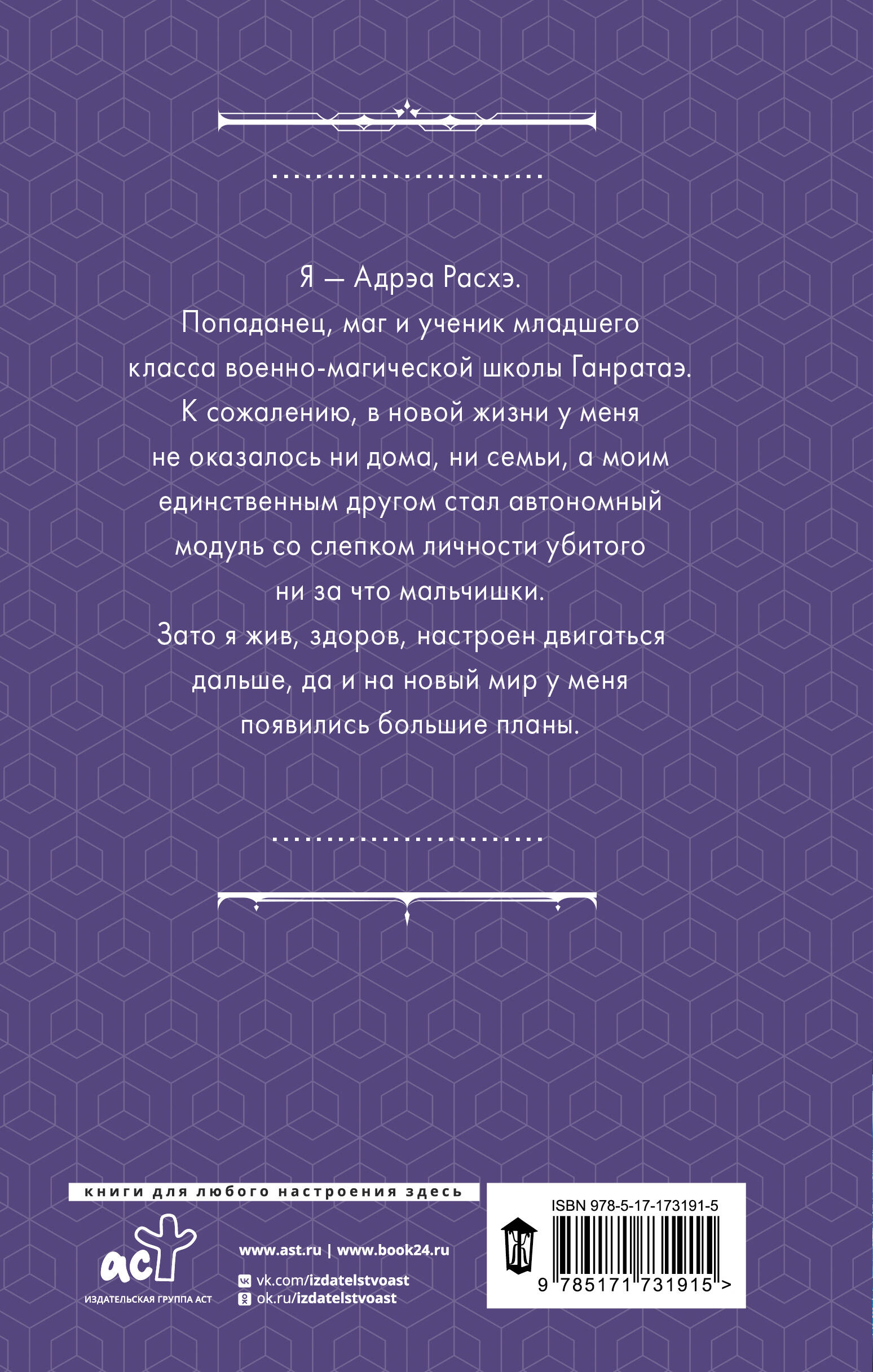 Я - Адрэа Расхэ. Попаданец, маг и ученик младшего класса военно-магической школы Ганратаэ. К сожалению, в новой жизни у меня не оказалось ни дома, ни семьи, а моим единственным другом стал автономный модуль со слепком личности убитого ни за что мальчишки. Зато я жив, здоров, настроен двигаться дальше, да и на новый мир у меня появились большие планы.| Издательство | Издательство "АСТ" |