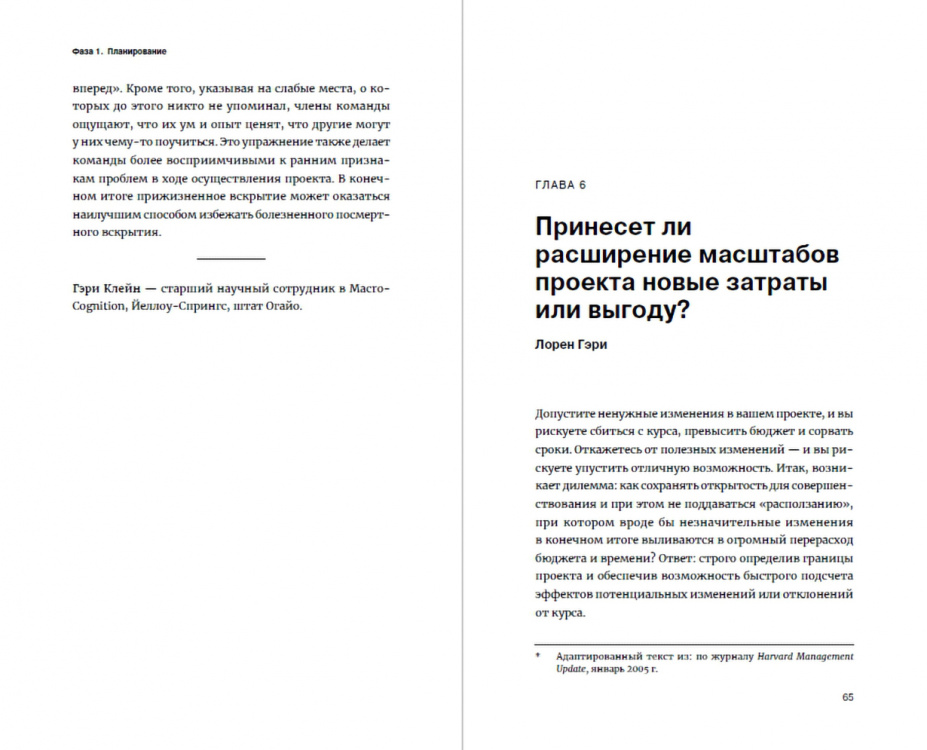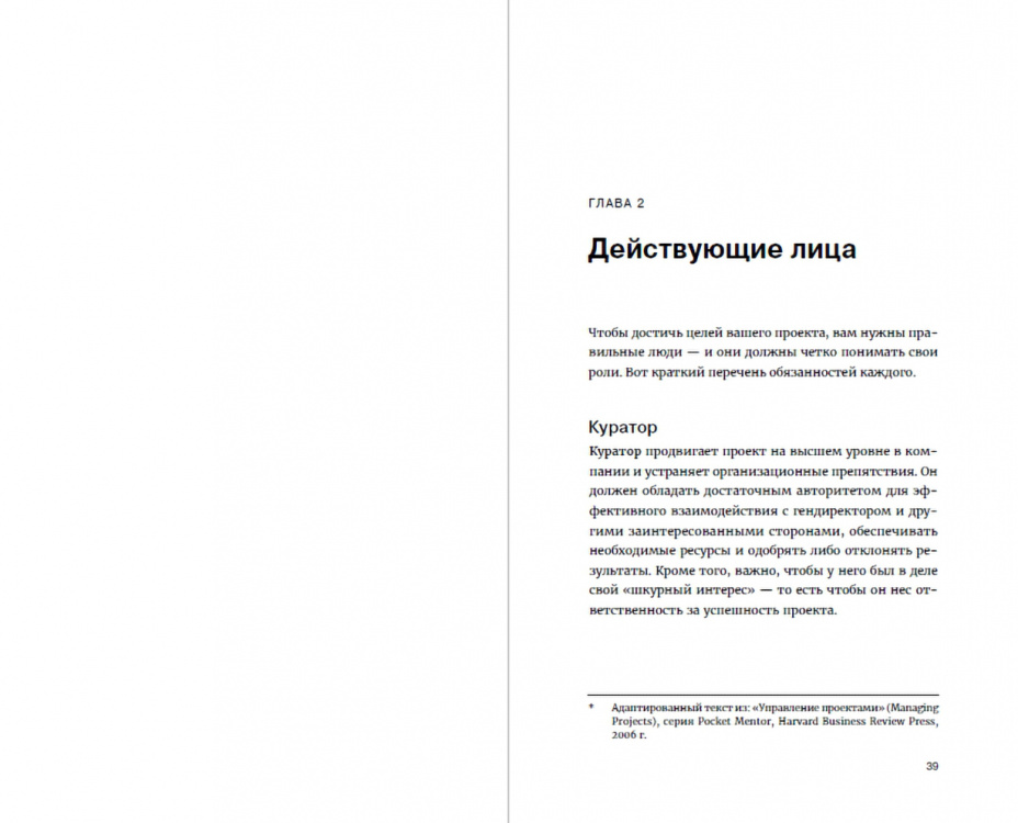<div class="b-post-content _bookPage"><h2 id="o-chem">О чем</h2><p>Каждый раз, когда вам поручают новый проект или работу, вы сталкиваетесь со знакомым чувством неопределенности. Как выполнить все вовремя и не выйти за рамки бюджета? Где найти нужных специалистов? Как увлечь команду единой целью? Стоит ли придерживаться первоначального плана чего бы это ни стоило или лучше проявить гибкость? Можно ли делегировать часть своих полномочий, или надежнее контролировать все самостоятельно?</p><p>Ваш проект может быть любым - большим или маленьким - от дизайна нового автомобиля до обновления информационной системы, но в любом случае вам предстоит пройти один и тот же путь из 4 этапов: планирование, подготовка, исполнение и завершение.</p><p>Авторы книги подробно рассказывают о каждом этапе и предлагают универсальный алгоритм действий. Вы овладеете необходимыми инструментами для эффективного управления проектами и обретете уверенность в себе и своих решениях. </p><h2 id="vy-nauchites">Вы научитесь:</h2><p></p><ul><li>выбирать нужных людей и поддерживать в них интерес к работе; </li><li>избегать неконтролируемого расширения масштаба проекта; </li><li>концентрироваться на ключевых задачах и строить логическую последовательность; </li><li>разбираться в методах Gantt и PERT; </li><li>вовлекать в работу несговорчивых членов команды; </li><li>держать в курсе заинтересованных лиц; </li><li>адекватно оценивать успешность проекта; </li><li>решать, когда следует остановиться; </li><li>усваивать и использовать полученные уроки.</li></ul><div class="box _cite"><div class="i-cite"><p class="i-cite__text"> «Каждый член команды должен вносить свой вклад в общую работу, но также получать от нее явные преимущества: опыт, который пригодится для будущей карьеры, или определенную материальную выгоду. В противном случае люди не будут стараться отдавать командной работе свои силы и время - по крайней мере в течение длительного срока. Их внимание будет сосредоточено на более выгодном для них выполнении стандартных обязанностей, а ваш проект они станут воспринимать как нечто второстепенное». </p></div></div><h2 id="dlya-kogo">Для кого</h2><p>Книга будет интересна всем, кто работает в команде, менеджерам проектов и руководителям. </p></div>| Издательство | Альпина |
