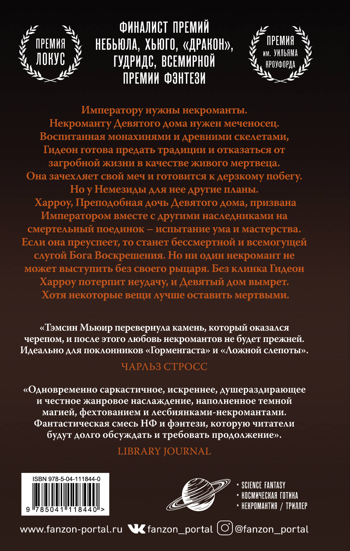 Лучший фантастический роман 2019 года по версии Amazon. Мир звездолетов, космических крепостей, бессмертного Императора и некромантов-аристократов. Темная магия сплетается с футуристической наукой, а группа соперников пытается выжить и раскрыть тайну замка на планете, полной призраков. «Впечатляющий роман Мьюир предлагает пьянящую и жуткую смесь науки, некромантии, постоянной опасности и порции странности "Горменгаста", не похожую ни на что иное». - Locus «Одновременно саркастичное, искреннее, душераздирающее и честно жанровое наслаждение, наполненное темной магией и фехтованием. Фантастическая смесь НФ и фэнтези, которую читатели будут долго обсуждать и требовать продолжение». - Library Journal «Захватывающая внежанровая книга, которая поражает своей живой энергией, персонажами и финальным эмоциональным ударом в живот». - Publishers Weekly «Эта книга интуитивная, яркая и откровенно жестокая. Короче говоря, совершенно изумительная». - Виктория Шваб «Некроманты! Дуэли! Разгром! Книга волнующая и восхитительная в равной степени. Я обожаю ее!» - Юн Ха Ли «Эта изобретательная и буйная книга с оригинальным авторским голосом - настоящее удовольствие». - Уоррен Эллис «Тэмсин Мьюир перевернула камень, который оказался черепом. Идеально для поклонников "Горменгаста" и "Ложной слепоты"». - Чарльз Стросс «Комбинация всех вещей, которые мне нравятся: мечи и магия, звездолеты и хай-тек, подростковый гнев, романтизм, герои, которые вынуждены сотрудничать, чтобы разгадать тайны космического замка, населенного призраками». - Марта Уэллс| Издательство | ООО "Издательство "Эксмо" |