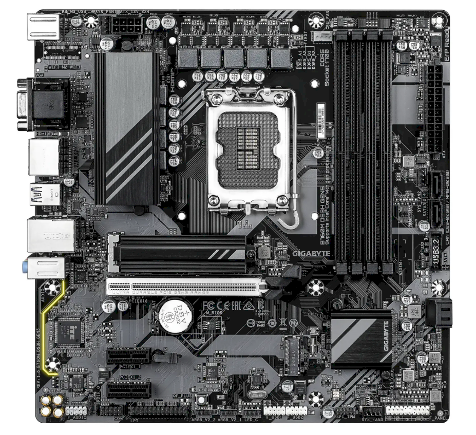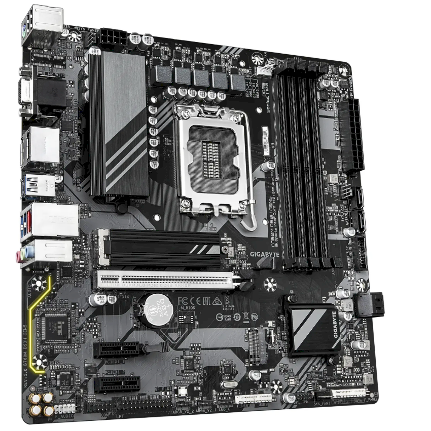 Gigabyte B760M DS3H GEN5 - это современная материнская плата форм‑фактора Micro ATX, разработанная для создания производительных настольных систем на базе процессоров Intel нового поколения. Она сочетает в себе широкие возможности подключения, поддержку последнего интерфейса PCIe 5.0, высокоскоростной сетевой интерфейс и поддержку современных стандартов памяти, что делает её подходящим решением для игровых, рабочих и универсальных ПК. Плата обеспечит стабильную платформу с хорошей расширяемостью для различных конфигураций компонентов.