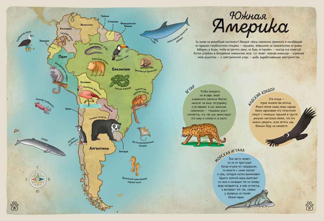 Совершите увлекательное путешествие по миру животных. Эта книга позволит вам обогнуть весь земной шар и познакомиться с самыми удивительными животными нашей планеты! Ваш путь будет лежать через ледники, саванны, пустыни, леса и луга. Вы узнаете о животных всё: места их обитания, форму следов и гнёзд, окраску шерсти или перьев, особенности поведения и рациона, а также множество интересных фактов. Разглядывайте яркие иллюстрации и узнавайте новое о мире животных!