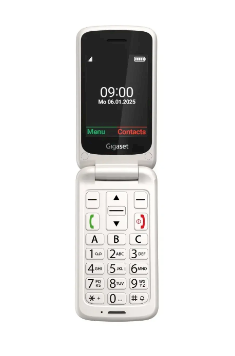 Gigaset GL595 - это простой и надёжный раскладной мобильный телефон (feature phone) с цветным 2.8″ TFT-экраном и разрешением 240×320 пикселей, предназначенный для базовой связи и удобного использования. Он поддерживает одну nano-SIM карту, имеет Bluetooth для передачи данных и слот для карты памяти MicroSD, что расширяет возможности хранения.