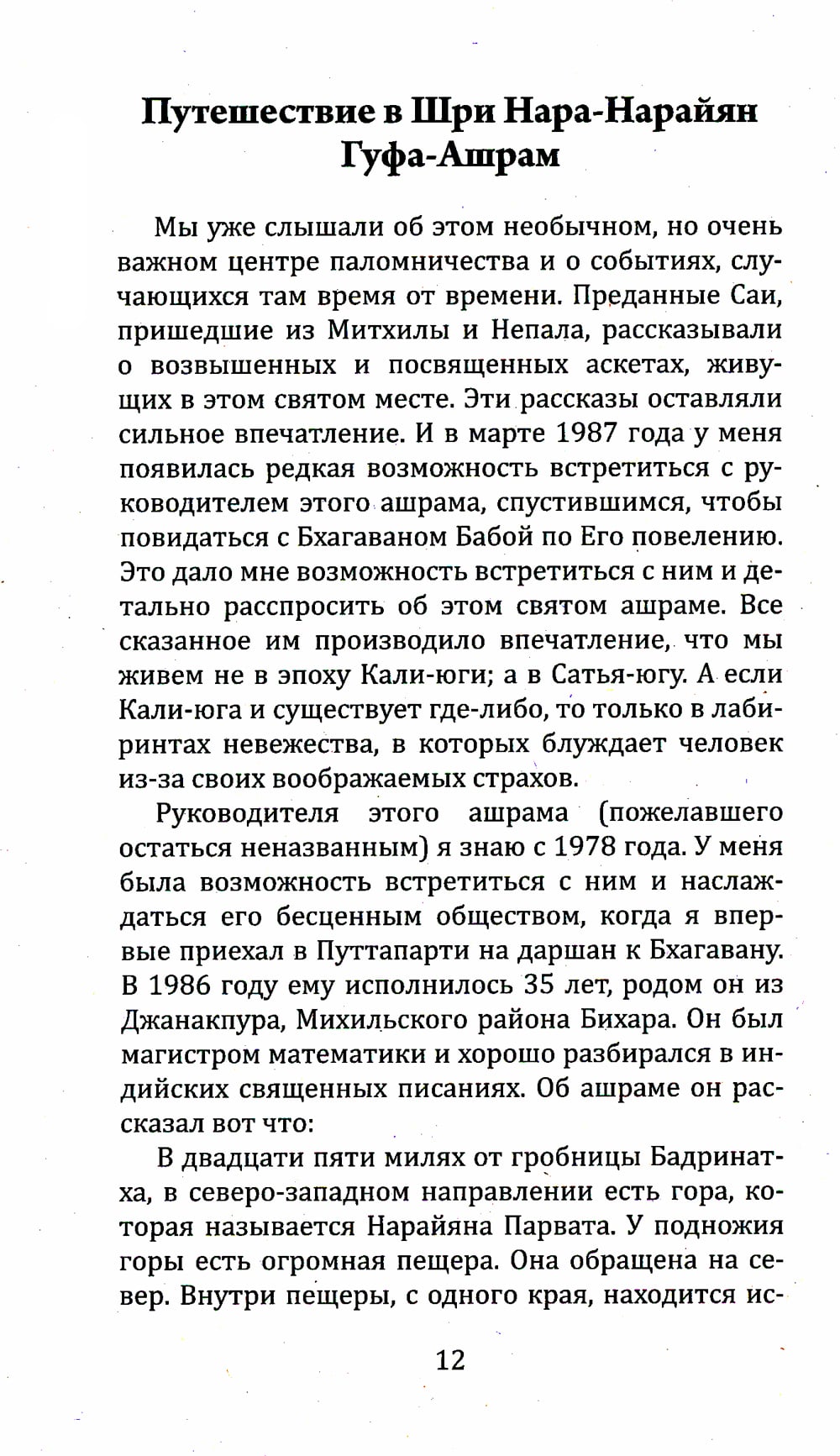 Данный сборник - это настоящий подарок всем, кто любит и ценит индийскую философию и религию. Первая часть - это перевод на русский язык книги Свами Махешварананды о Сатья Саи Бабе и Нара-Нарайяне Гуфа-ашраме. В книге раскрываются тонкости духовного развития в русле индуизма и учения Сатья Саи Бабы.