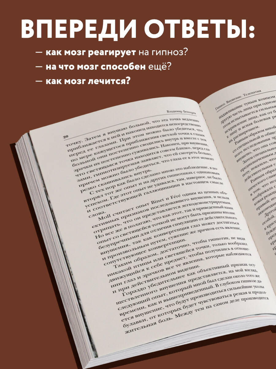 Владимир Михайлович Бехтерев - выдающийся психиатр, невролог, физиолог, психолог. Провел сотни уникальных опытов гипноза, объяснил тайну иллюзий и галлюцинаций. Занимался изучением передачи мыслей на расстоянии. Разработал методы лечения многих болезней и создал ряд лекарственных препаратов. Более 20 лет изучал вопросы полового воспитания и поведения ребенка. Книга для тех, кто интересуется психологией, ментальным здоровьем, работой мозга и воздействием на людей. «Толпа связывается в одно целое настроением, а потому с толпой говорить надо не столько убеждая, сколько рассчитывая возбудить её горячими словами». - Владимир Бехтерев| Издательство | ООО "Издательство "Эксмо" |