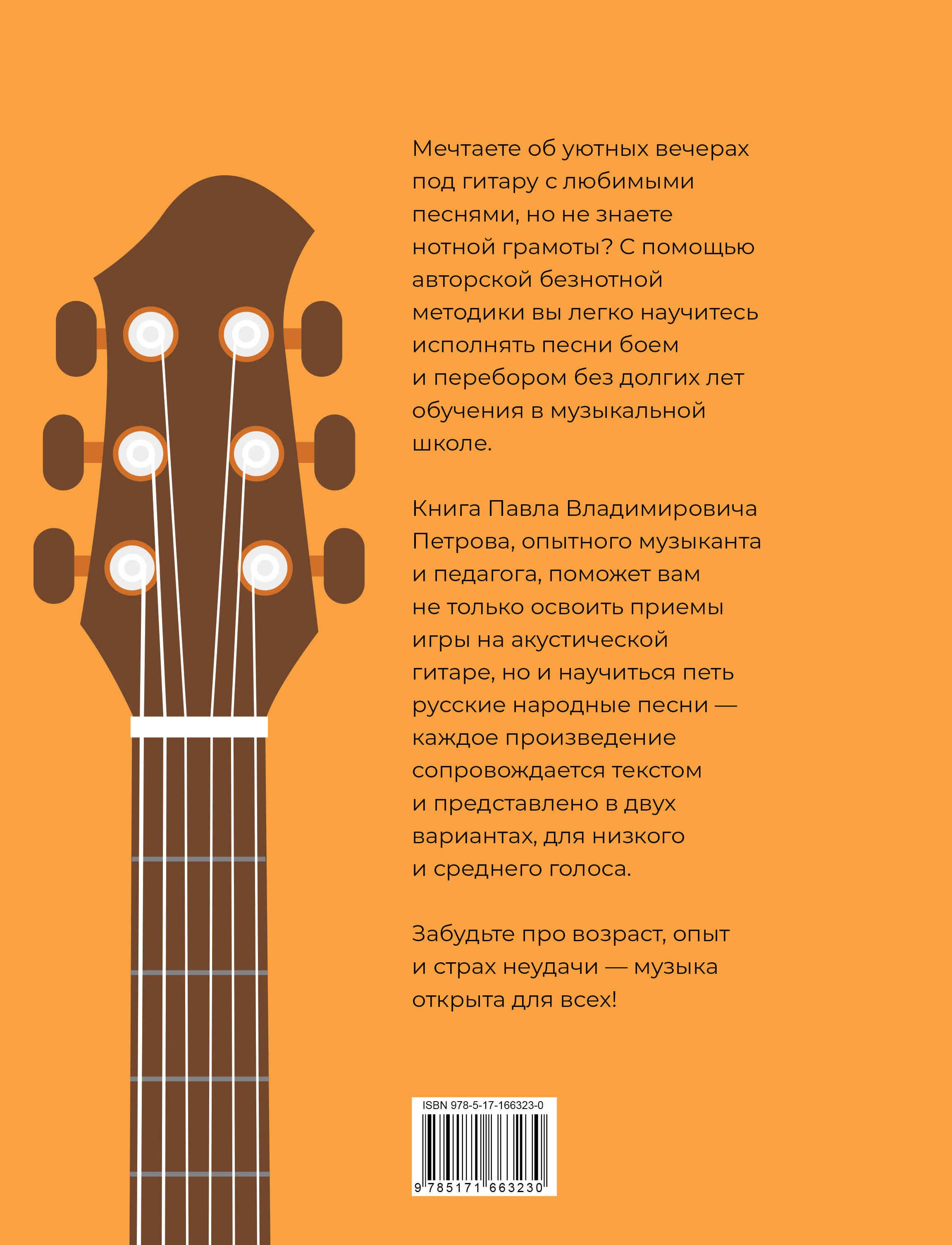 Мечтаете об уютных вечерах под гитару с любимыми песнями, но не знаете нотной грамоты? С помощью авторской безнотной методики вы легко научитесь исполнять песни боем и перебором без долгих лет обучения в музыкальной школе. Книга Павла Владимировича Петрова, опытного музыканта и педагога, поможет вам не только освоить приемы игры на акустической гитаре, но и научиться петь русские народные песни - каждое произведение сопровождается текстом и представлено в двух вариантах, для низкого и среднего голоса. Забудьте про возраст, опыт и страх неудачи - музыка открыта для всех!| Издательство | Издательство "АСТ" |