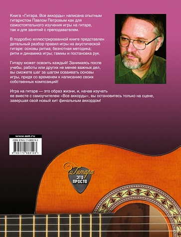 «Гитара. Все аккорды» написан опытным преподавателем - Павлом Петровым, как для самостоятельного изучения игры на гитаре, так и для занятий с преподавателем. В подробно иллюстрированной книге вы найдете детальный разбор правил игры на акустической гитаре: основы ритма; безнотная методика; ритм и динамика игры; гаммы и постановку рук. Гитару может освоить каждый! Занимаясь после учебы, работы или других не менее важных дел, вы сможете шаг за шагом осваивать основы игры, придя со временем к написанию своих собственных композиций! Игра на гитаре - это образ жизни и начав изучать ее вместе с самоучителем «Все аккорды» вы остановитесь только на сцене, завершая свой новых хит финальным аккордом!