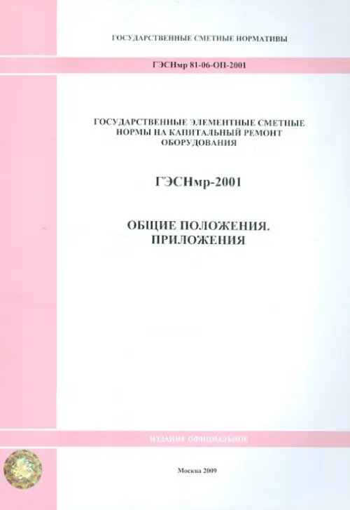 Государственные сметные нормативы. Государственные элементные сметные нормы на капитальный ремонт оборудования (далее - ГЭСНмр) предназначены для определения потребности в ресурсах (затрат труда рабочих, машинистов, времени эксплуатации строительных машин и механизмов, материальных ресурсов) при выполнении работ по капитальному ремонту оборудования и для составления на их основе сметных расчетов (смет) на производство указанных работ ресурсным и ресурсно-индексным методами. ГЭСНмр являются исходными нормами для разработки других сметных нормативов: единичных расценок федерального, территориального и отраслевого уровней, индивидуальных и укрупненных сметных нормативов.