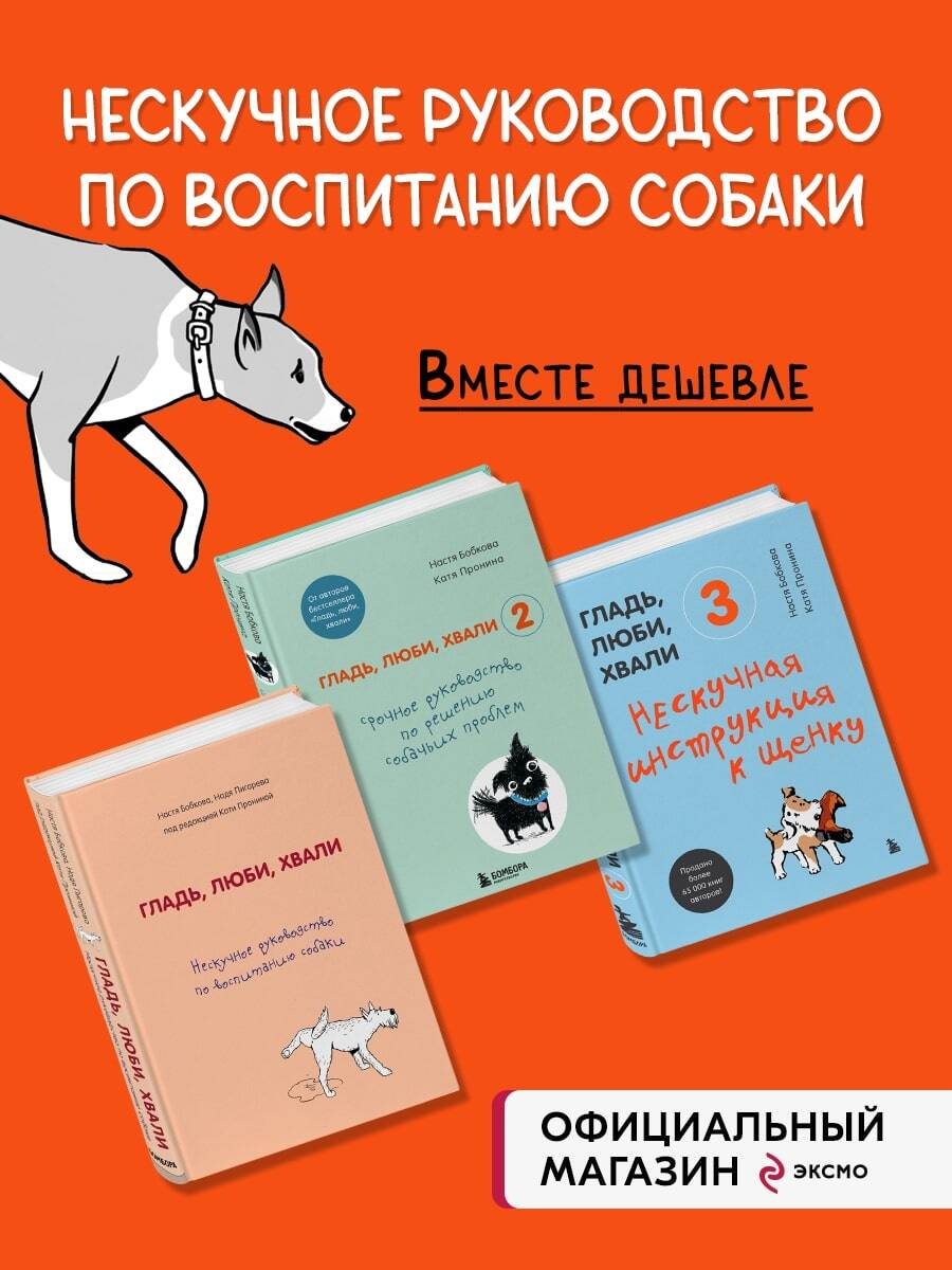 В состав комплекта вошли 3 книги: Гладь, люби, хвали. Нескучное руководство по воспитанию собаки ; Гладь, люби, хвали 2. Срочное руководство по решению собачьих проблем; Гладь, люби, хвали 3. Нескучная инструкция к щенку| Издательство | ООО "Издательство "Эксмо" |
