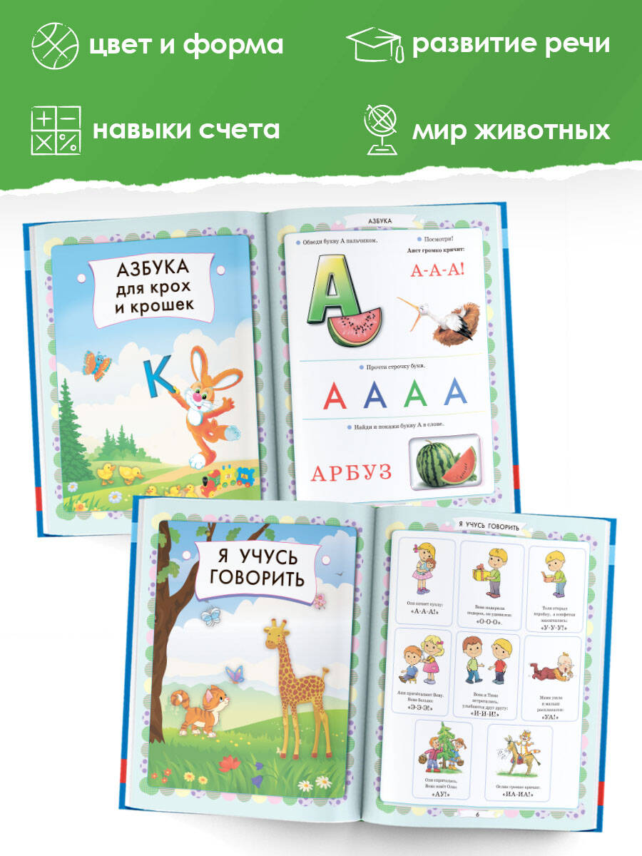 Эта книга - отличный помощник родителям, которые хотят помочь ребенку раскрыть свои таланты и способности. Задания подобраны с учетом возрастных особенностей детей от трех лет и идеально подходят для домашнего обучения. Малыш разовьет речь, обогатит словарный запас, расширит кругозор, выучит буквы и цифры, ознакомится с основными цветами и формами, потренирует внимание, логику и память. Для дошкольного возраста.| Издательство | ИЗДАТЕЛЬСТВО "АСТ" |
