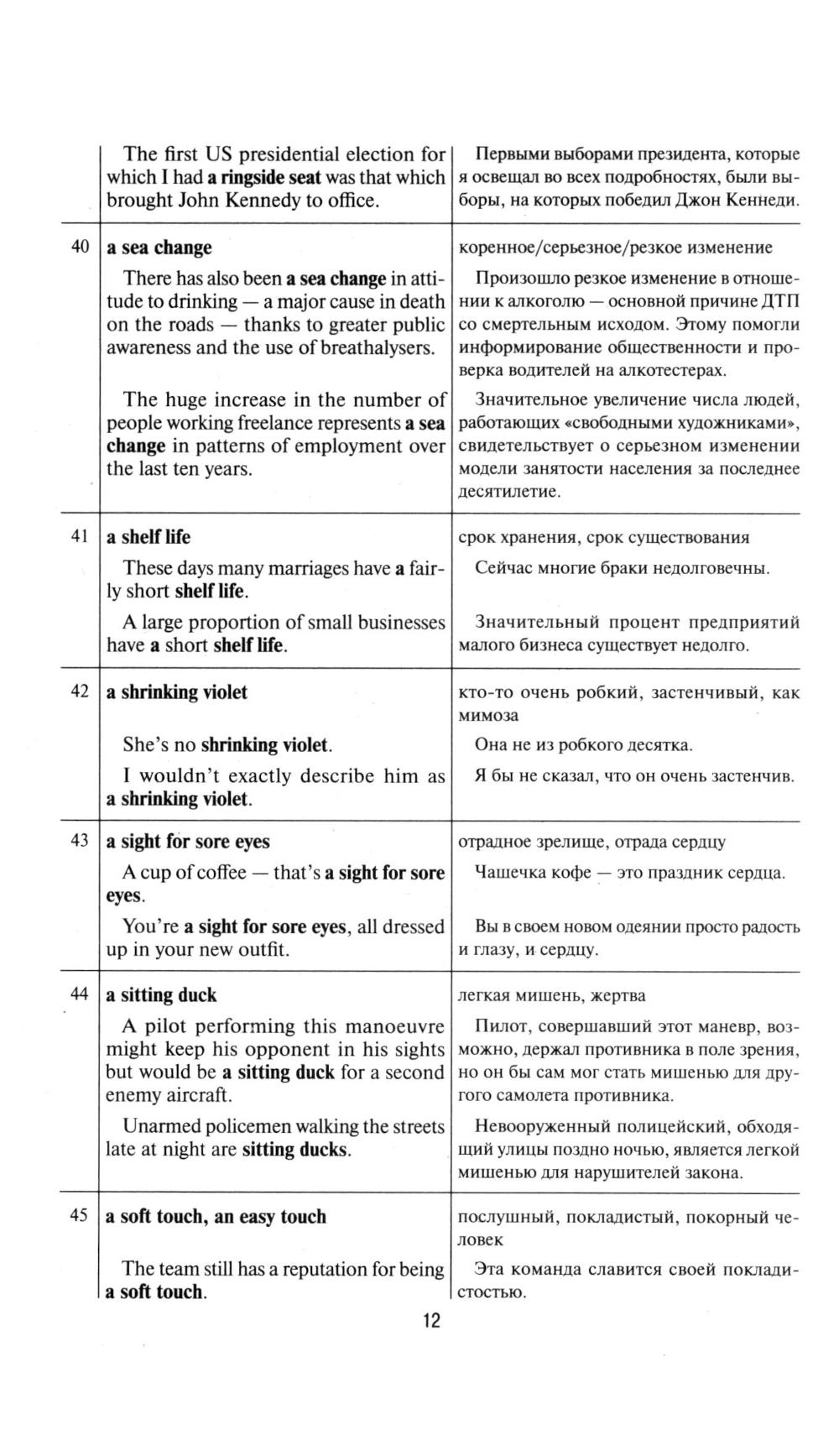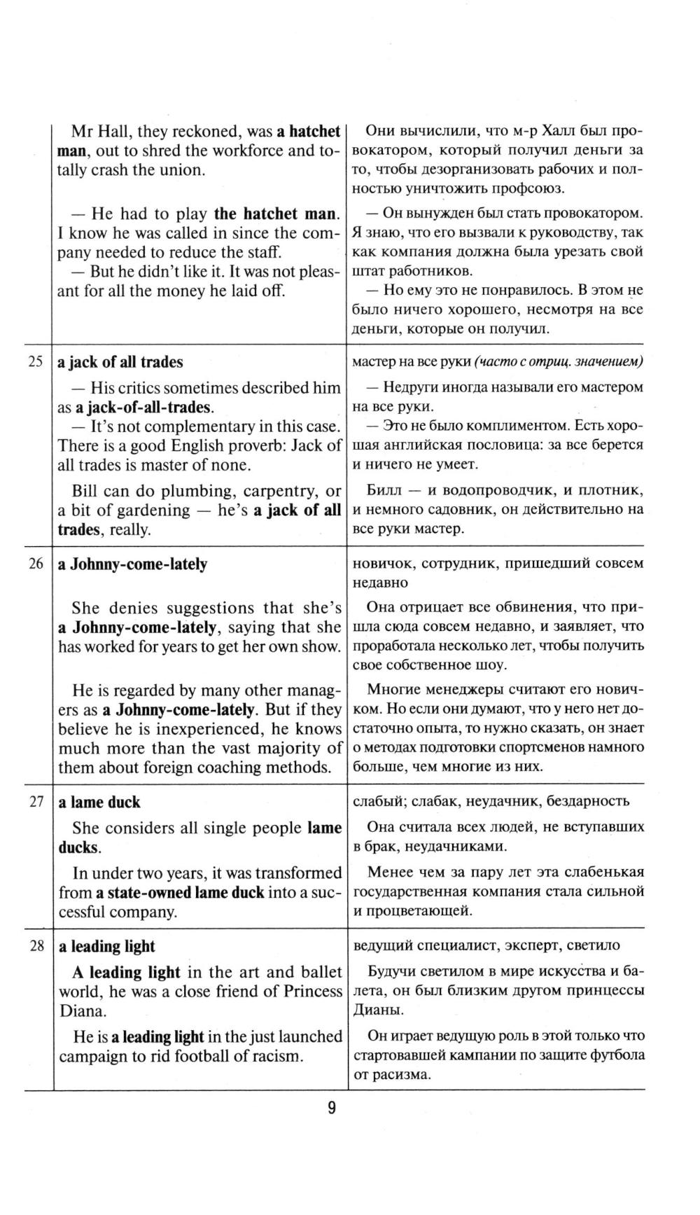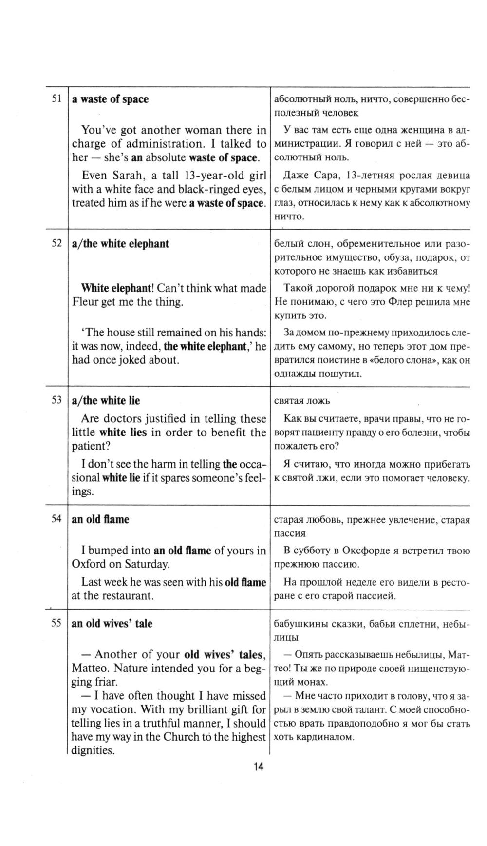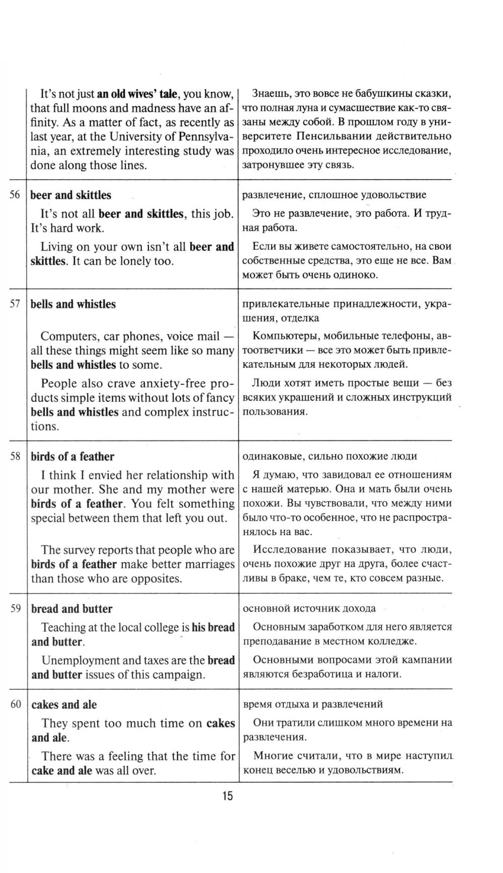 Данный словарь-справочник включает несколько сотен идиом, наиболее часто употребляющихся в современном английском языке. При отборе автор руководствовался популярностью тех или иных идиом, их ролью в языке. Данные устойчивые выражения являются органической частью языка любого носителя, они необходимы для беглой, грамотной, выразительной речи. Отобранные идиомы систематизированы по структурному принципу. Первая часть пособия содержит идиомы-словосочетания существительных, вторая - идиомы-глагольные словосочетания. Для удобства читателя идиомы даются в алфавитном порядке.| Издательство | Проспект |