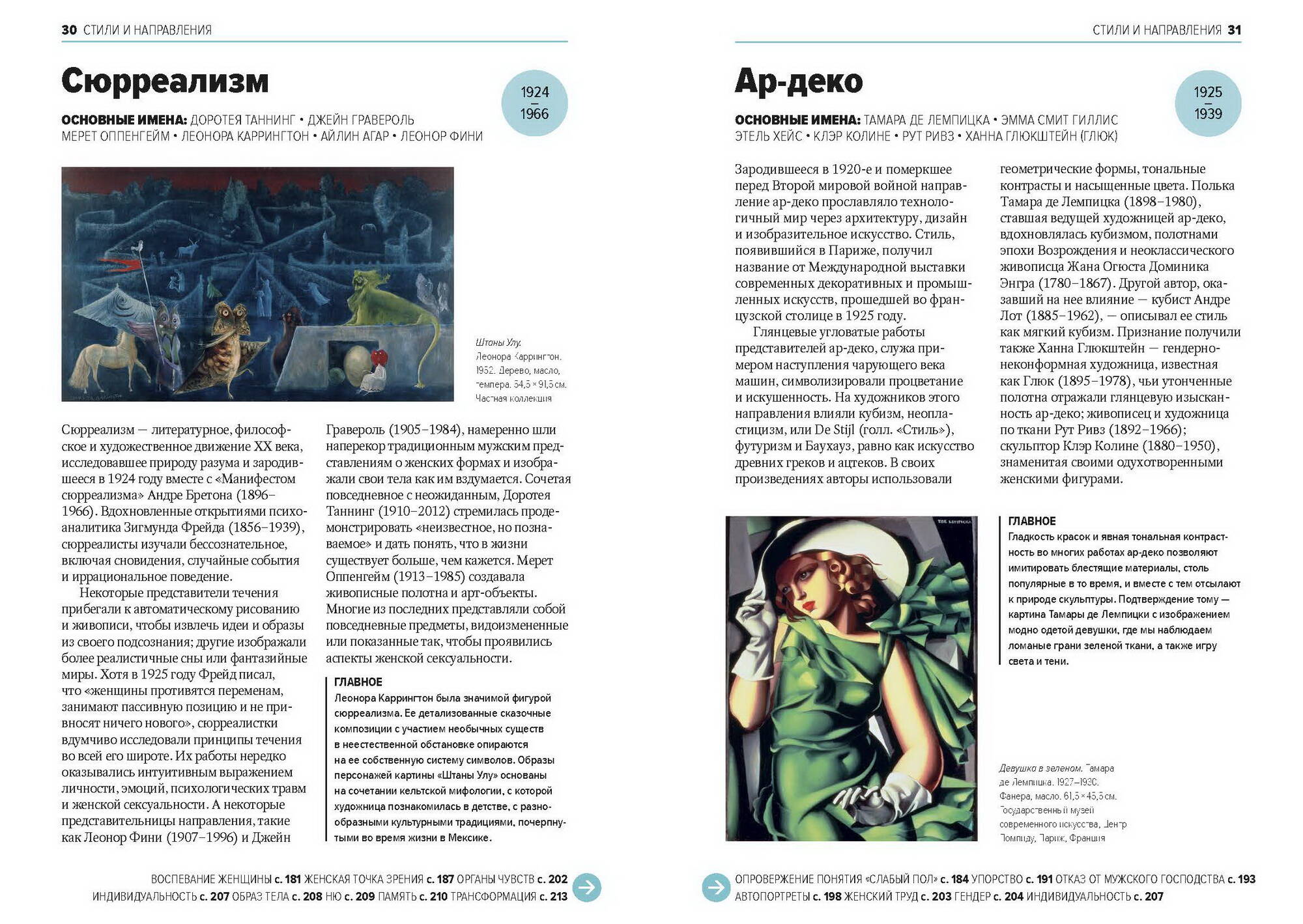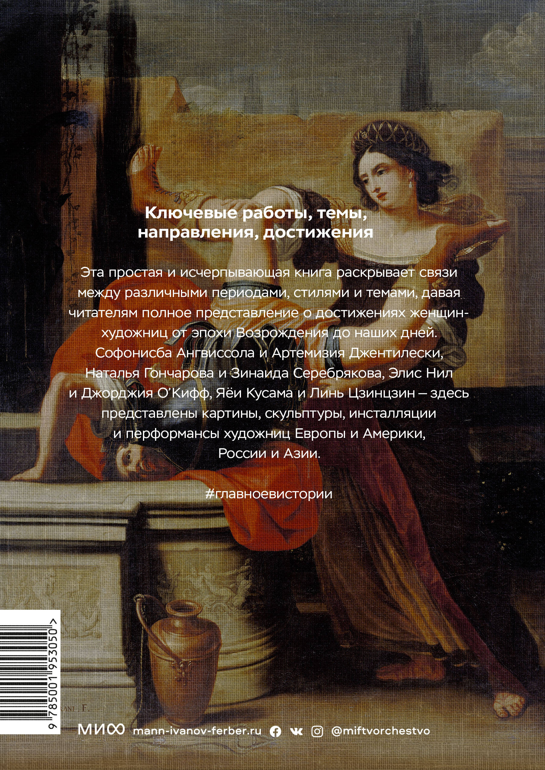 Эта книга рассказывает полную историю женщин в искусстве. В ней представлены работы художниц от эпохи Возрождения до наших дней. Их творчество исследуется через анализ художественных стилей, конкретных произведений, затронутых тем и особых достижений. В книге есть главы, посвященные нашим соотечественницам, среди которых - Наталья Гончарова, Любовь Попова, Зинаида Серебрякова, Марина Абрамович, Мария Башкирцева, Ольга Розанова. Книга отмечает вклад женщин в развитие искусства и рассказывает о многих забытых и неизвестных художницах, чье наследие сейчас заново открывают и переоценивают. Особый формат книги - с перекрестными ссылками и пояснениями - позволяет подчеркнуть значимость их работ, а также рассмотреть их в контексте всей истории искусства. Доступная, лаконичная и богато иллюстрированная книга раскрывает связи между различными периодами, художницами и направлениями, давая читателям полное понимание достижений женщин-художников. Как читать эту книгу: Структура книги позволяет любому читателю легко перемещаться по основным стилям, темам и достижениям художниц и знакомиться с историей развития женского искусства. В книге четыре раздела: "Стили и направления", "Произведения", "Достижения" и "Темы". Читать можно последовательно или отдельными секциями в любом порядке. Перекрестные ссылки внизу каждой страницы позволяют увидеть внутренние связи и пересечения, а во врезках рассказывается о жизни и главных достижениях художниц. Для кого эта книга: Для поклонников серии "Главное в истории". Для всех, кто интересуется искусством, но пока мало знает про творчество художников-женщин. От автора: Женщины занимались творчеством с древности, но на протяжении долгих веков их игнорировали, исключали, практически вычеркивали из истории искусства. <...> Веками им запрещалось поступать в художественные академии и сообщества, брать уроки живописи, посещать натурные классы, участвовать в художественных конкурсах и выставках. До XVI века систематическое образование женщинам было почти недоступно. <...> Несмотря на все трудности, многие женщины все же становились художницами, но едва ли получали такое же признание, как художники-мужчины. Сейчас расстановка сил меняется. Препятствия исчезают, и все чаще вклад женщин в развитие искусства признают и оценивают по-новому.| Издательство | Манн, Иванов и Фербер |