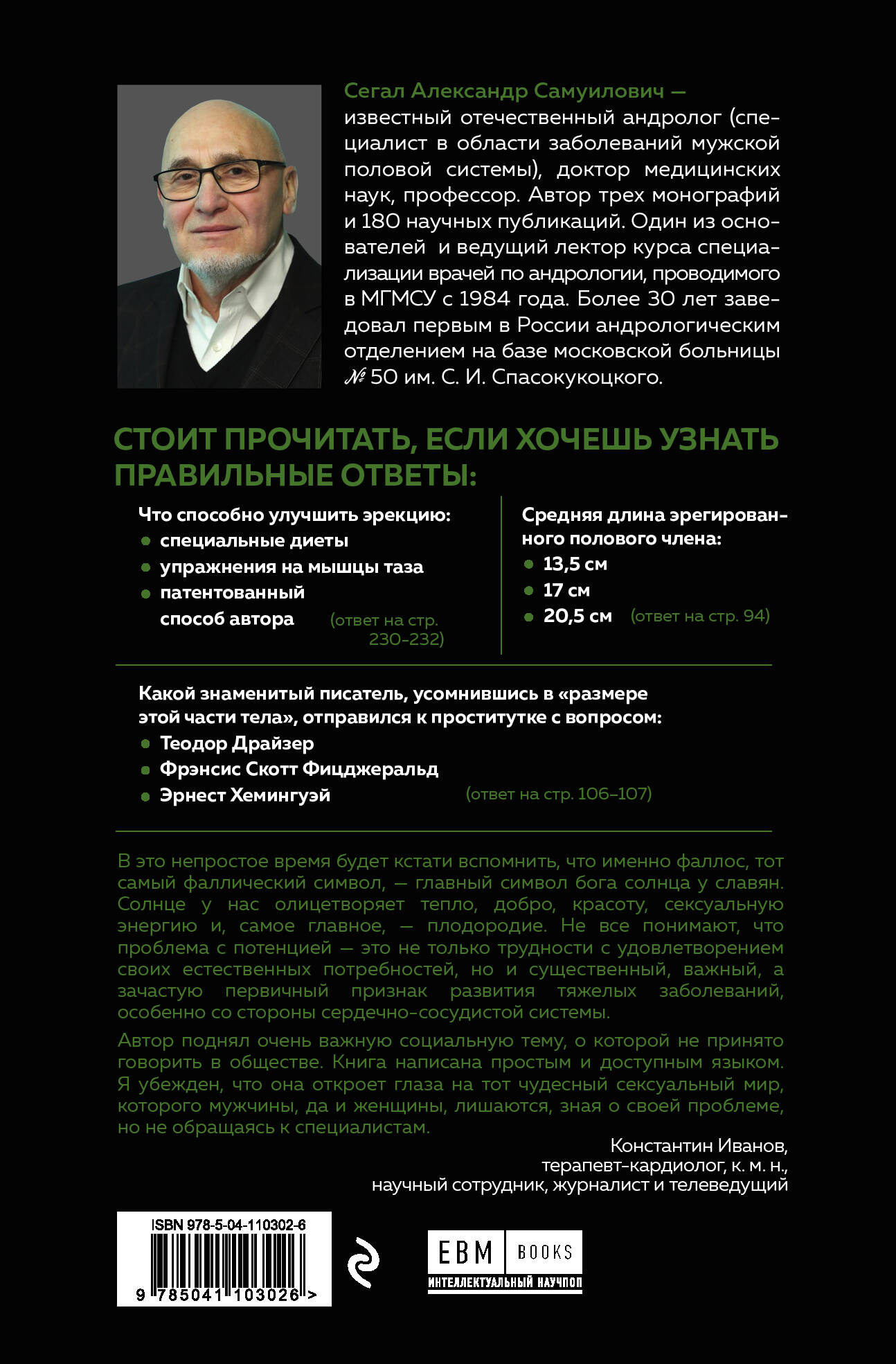 Какие случайные научные открытия позволили решить проблему эректильной дисфункции? Так ли важен размер пениса в половой жизни? С чем связан обряд обрезания, в чем его преимущества и недостатки? На эти и другие вопросы ответит Александр Самуилович Сегал - доктор медицинских наук, андролог. Он поможет разобраться в анатомии и физиологии, расскажет все о заболеваниях, травмах и профилактике, объяснит, где миф, а где проверенные научные данные и познакомит с интересными фактами и историческими феноменами того, как половой член представлялся в мировой литературе и изобразительном искусстве.| Издательство | ООО "Издательство "Эксмо" |