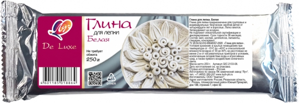 Глина подготовлена для лепки, не требует обжига, затвердевает на воздухе.