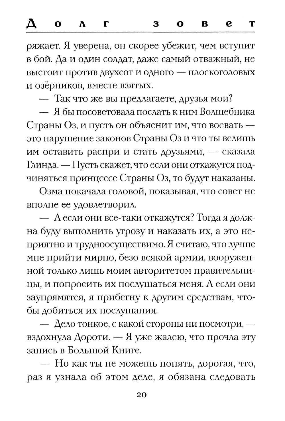 В чудесной Стране Оз царят мир, процветание и счастье, но в одном из дальних уголков этой волшебной страны живут два племени - Плоскоголовые и Озёрники, которые объявили друг другу войну. Решив удержать своих подданных от войны, правительница страны Оз, принцесса Озма, вместе со своей дорогой подругой, принцессой Дороти Гейл (которая раньше жила в Канзасе), отправляется на поиски восстановления мира. Захватывающая сказка о страхе, волшебстве и приключениях «Глинды из страны Оз» - четырнадцатая и последняя книга о стране Оз, написанная Л. Фрэнком Баумом. Это грандиозное завершение его хроники о любимой американской сказочной стране. В этом роскошном подарочном издании представлены все двенадцать прекрасных цветных иллюстраций художника Джона Р. Нила, а также около ста черно-белых рисунков, что делает книгу идеальным подарком для всех поклонников страны Оз, как новых, так и старых.| Издательство | Престиж Бук |