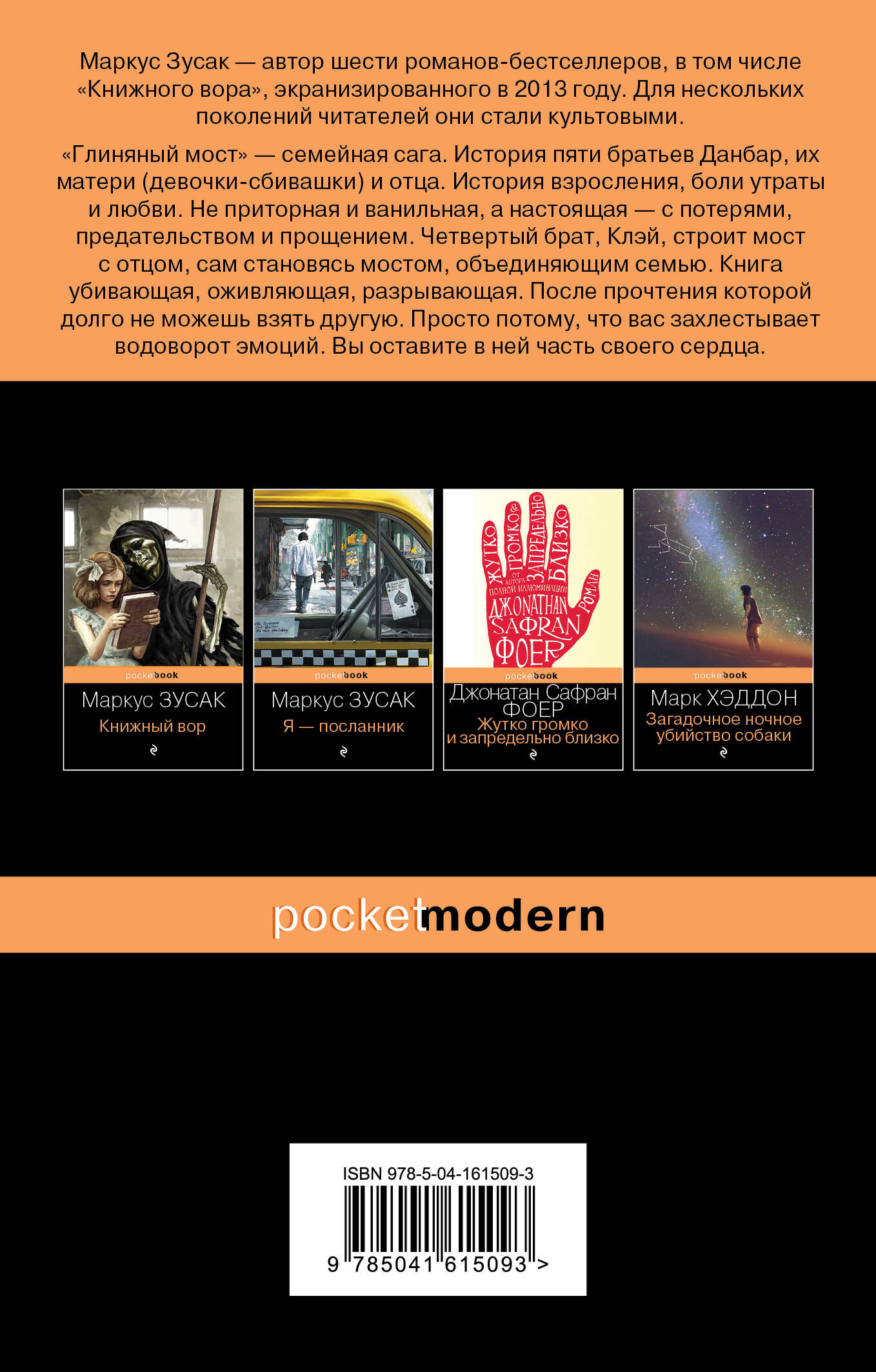 «Глиняный мост» - семейная сага. История пяти братьев Данбар, их матери (девочки-сбивашки) и отца. История взросления, боли утраты и любви. Не приторной и ванильной, а настоящей - с потерями, с предательством и прощением, с умением выстоять. Клэй - четвертый брат, ему посвящается роман. Уехав строить мост с отцом, он и сам стал мостом, объединившим семью. В романе столько интересных тем: любовь к животным, к скачкам, к древнегреческой мифологии, литературе, музыке, живописи, архитектуре. Книга убивающая, оживляющая, разрывающая. Такая, после прочтения которой долго не можешь взять другую. Просто потому, что вас захлестывает водоворот эмоций. Вы оставите в ней часть своего сердца.| Издательство | Эксмо |