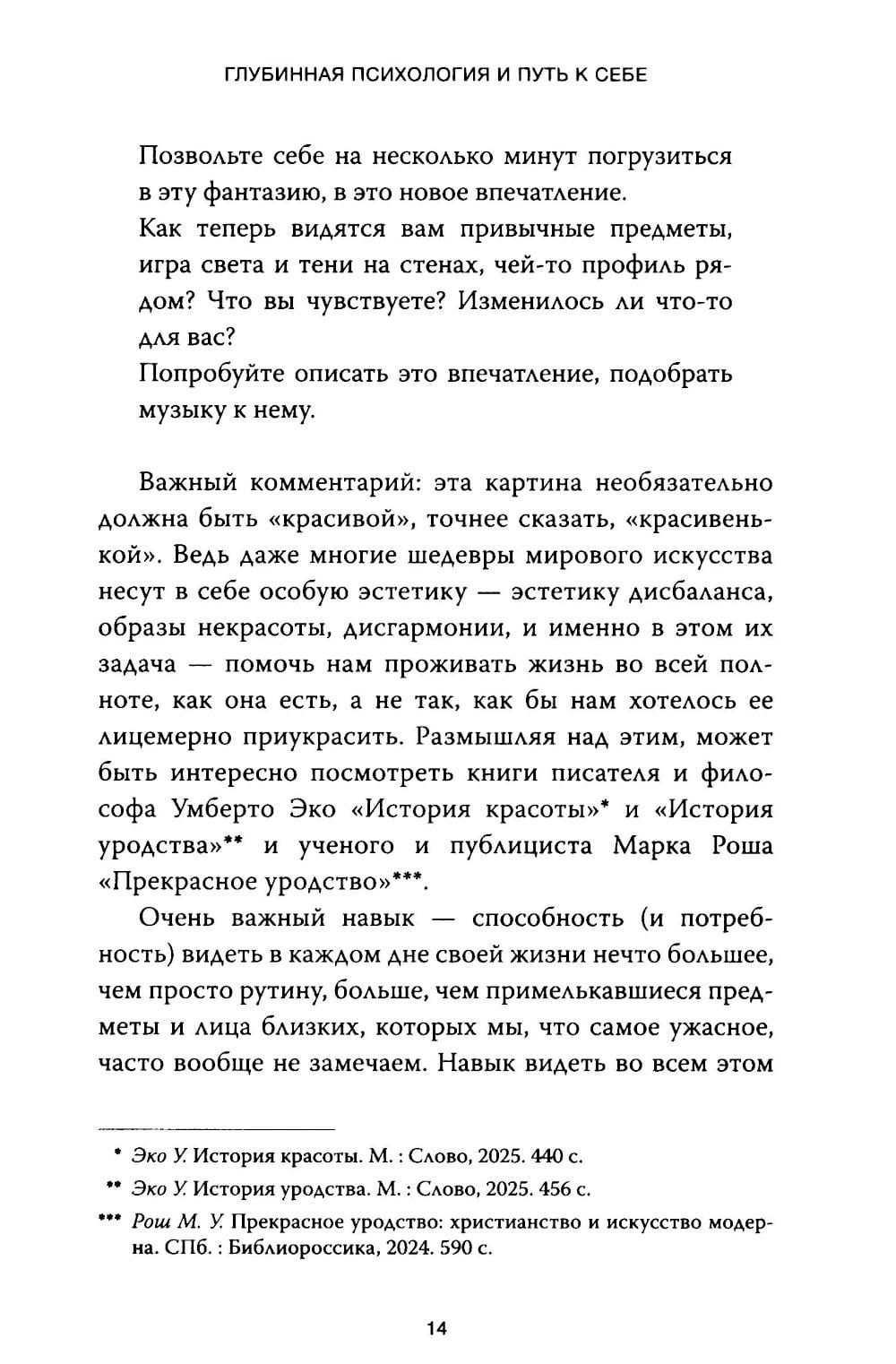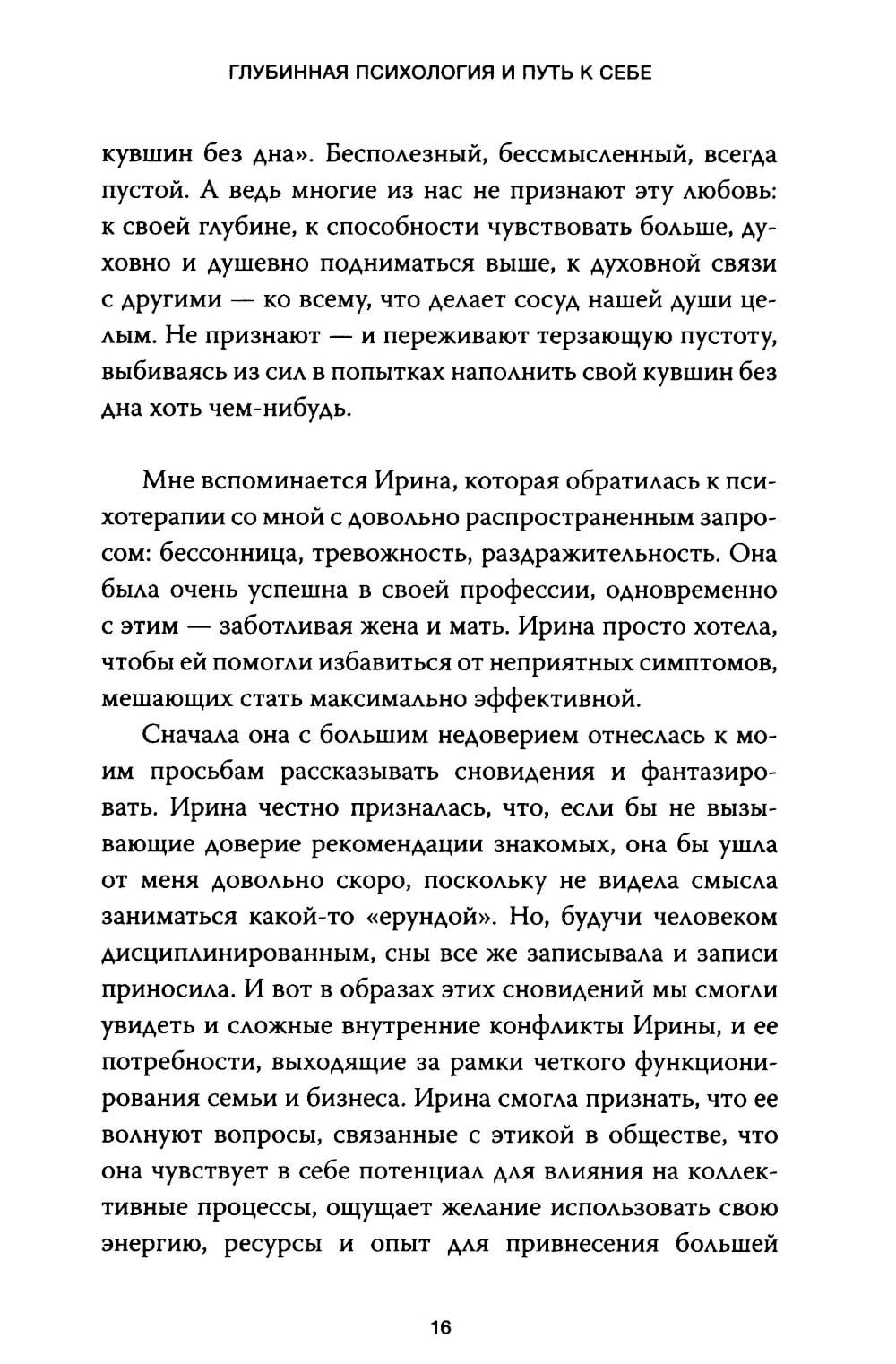 Вдохновляющий путеводитель от юнгианского психоаналитика по поиску смысла и духовности в повседневной жизни. Люди приходят в психотерапию с типичными проблемами: хотят устранить трудности в отношениях, перестать беспокоиться, избавиться от неприятных эмоций. Но за всем этим может скрываться глубинная причина - недостаток контакта с чем-то большим, чем мы сами: со своей душой, с бессознательным. Без этого контакта мы ощущаем бессмысленную рутину, внутреннюю пустоту, кризис, тупик. А его восстановление позволяет чувствовать глубину каждого дня, видеть в проблемах не только вызовы, но и смысл, и красоту человеческой жизни. Бессознательное говорит с нами через сны, символы, фантазии, телесные ощущения, совпадения (синхронии). Глубинная психология - подход, который позволяет понимать эти послания, скрытые в повседневных переживаниях - тревоге, бессоннице, усталости, конфликтах. Тогда симптомы рассматриваются не как «поломки», а как подсказки на пути к развитию и целостности. В книге вы найдете инструменты глубинной психологии на каждый день, чтобы понимать язык бессознательного, находить смысл в повседневных переживаниях, установить глубокий контакт с собой.| Издательство | Манн, Иванов и Фербер |