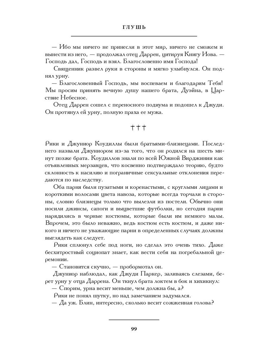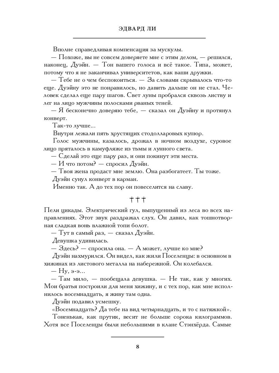 Молодая, успешная, красивая. Патриция покорила Вашингтон, но необходимость вернуться в родные края вызывает в ней давно забытое чувство страха. Американское захолустье, соблазны юности, тупоголовые и жестокие реднеки, таинственный культ Поселенцев и череда загадочных кровавых смертей встречают ее дома. Чья воля направляет руки жестоких убийц? Не станет ли Патриция очередной жертвой пожирающей души глуши?| Издательство | Т8 RUGRAM |