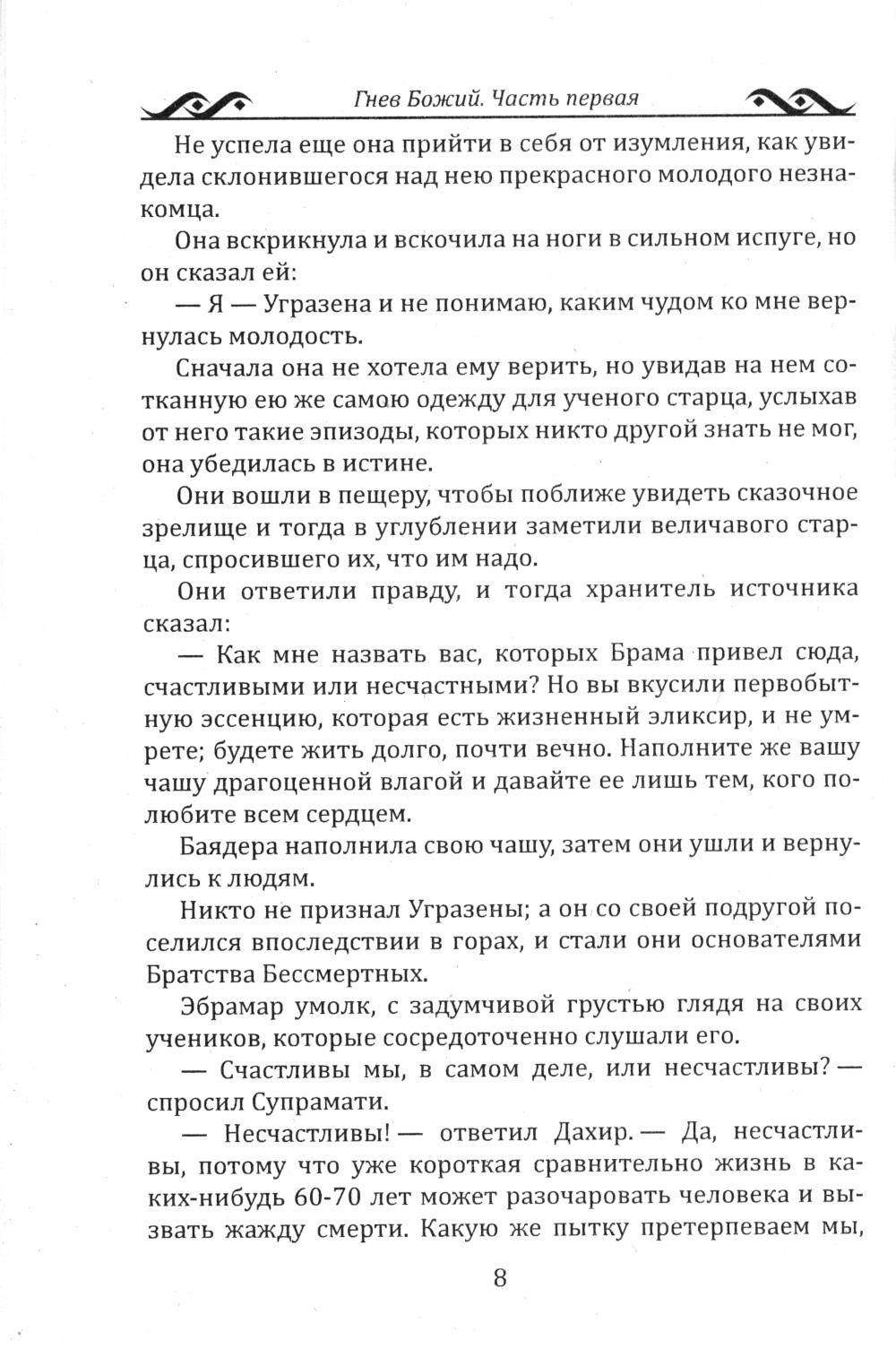 «Гнев Божий» - третий роман «мистической» серии исторических романов русской писательницы Веры Ивановны Крыжановской (1857-1924]. Серия состоит из пяти книг: «Эликсир жизни», «Маги», «Гнев Божий», «Смерть планеты» и «Законодатели». Волею судеб молодой доктор Ральф Морган становится бессмертным членом братства Круглого Стола Вечности, перевоплощаясь в принца Супрамати. Его новые друзья - Нара, Дахир, Эбрамар и Нарайяна знакомят главного героя с таинственным оккультным миром и его законами. Под руководством Дахира Супрамати проходит курс обучения основам магии и оккультных знаний, готовясь к их применению в реальной жизни. После пребывания в гималайских горах Супрамати и Дахир, ведомые своим духовным учителем Эбрамаром, попадают в будущее, в 2284 год, вступая в схватку с силами тьмы. Гнев Божий готов излиться на планету, погрязшую во грехе, и начинающие маги готовы показать своё мастерство. Для широкого круга читателей, интересующихся эзотерикой.| Издательство | Амрита-Русь |