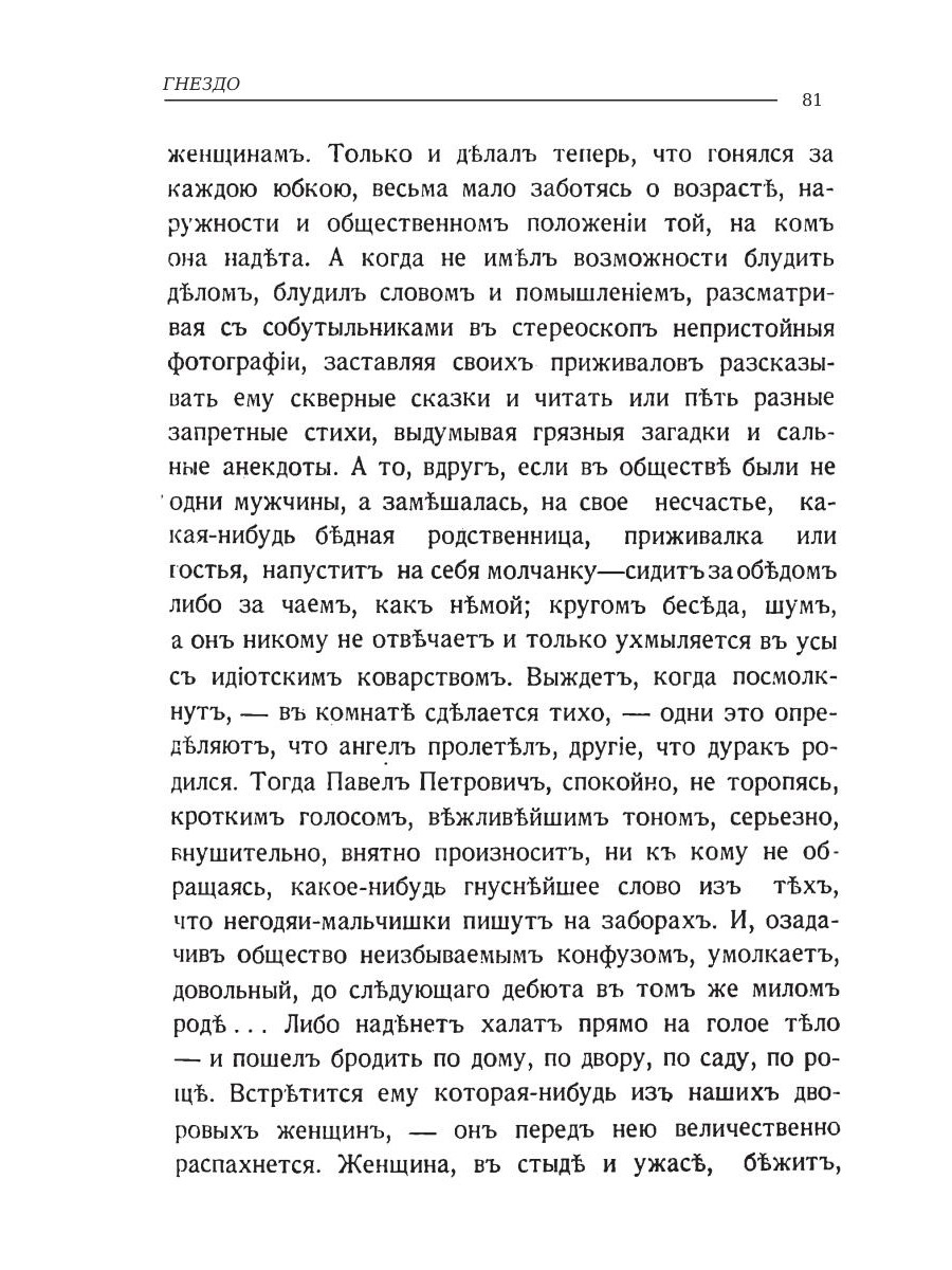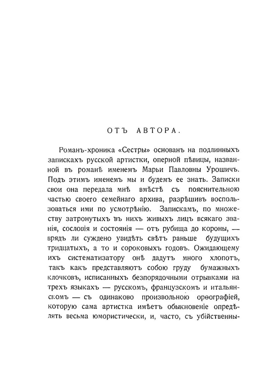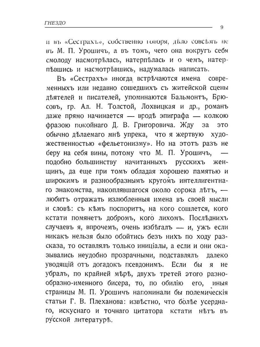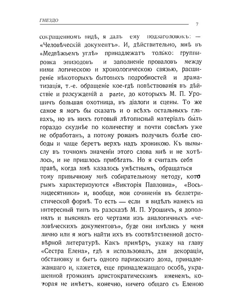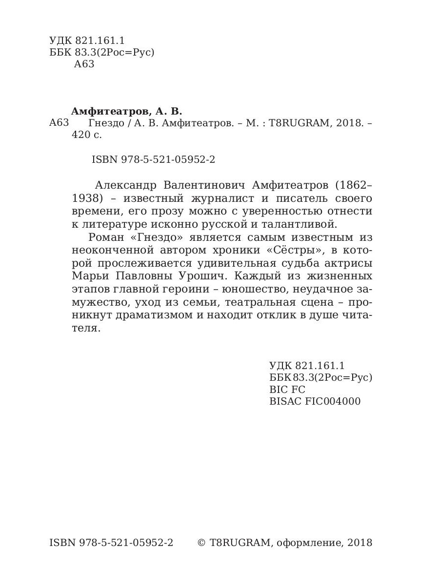 Роман «Гнездо» является самым известным из неоконченной автором хроники «Сестры», в которой прослеживается удивительная судьба актрисы Марьи Павловны Урошич. Каждый из жизненных этапов главной героини - юношество, неудачное замужество, уход из семьи, театральная сцена - проникнут драматизмом и находит отклик в душе читателя.