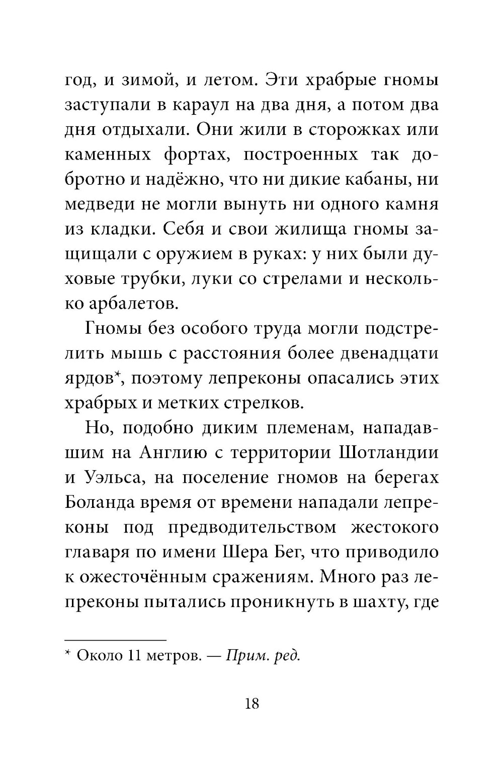 Однажды Лобхобу, самому умному из всех гномов Боландского леса, пришла в голову мысль построить паровоз, и через несколько месяцев в лесу появилась железная дорога. Теперь гномы могли ездить на шахту и на реку на поезде, и им больше не приходилось таскать по лесным тропинкам тяжёлые золотые слитки и рыбу, выловленную в реке. Жизнь гномов была бы счастливой и безмятежной, если бы не злобные разбойники-лепреконы, которые время от времени наведывались в лес. Во время одного из этих дерзких набегов лепреконы захватили в плен предводителя гномов. Удастся ли гномам освободить своего вождя и очистить Боландский лес от разбойников? Эта захватывающая история написана в лучших традициях бестселлера «Вверх по Причуди и обратно»: увлекательные приключения, неожиданные повороты сюжета, более 30 стильных чёрно-белых иллюстраций и ни с чем не сравнимая атмосфера классического литературного произведения «старой школы», незаслуженно позабытого и открытого заново. На русском языке публикуется впервые.| Издательство | Добрая книга |