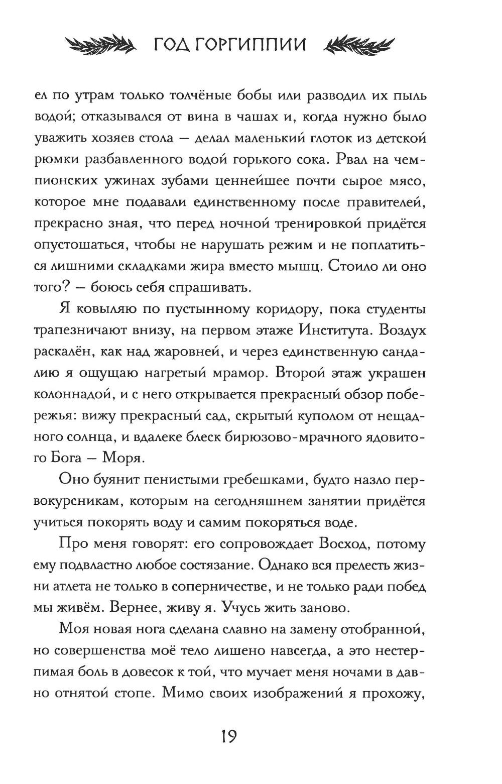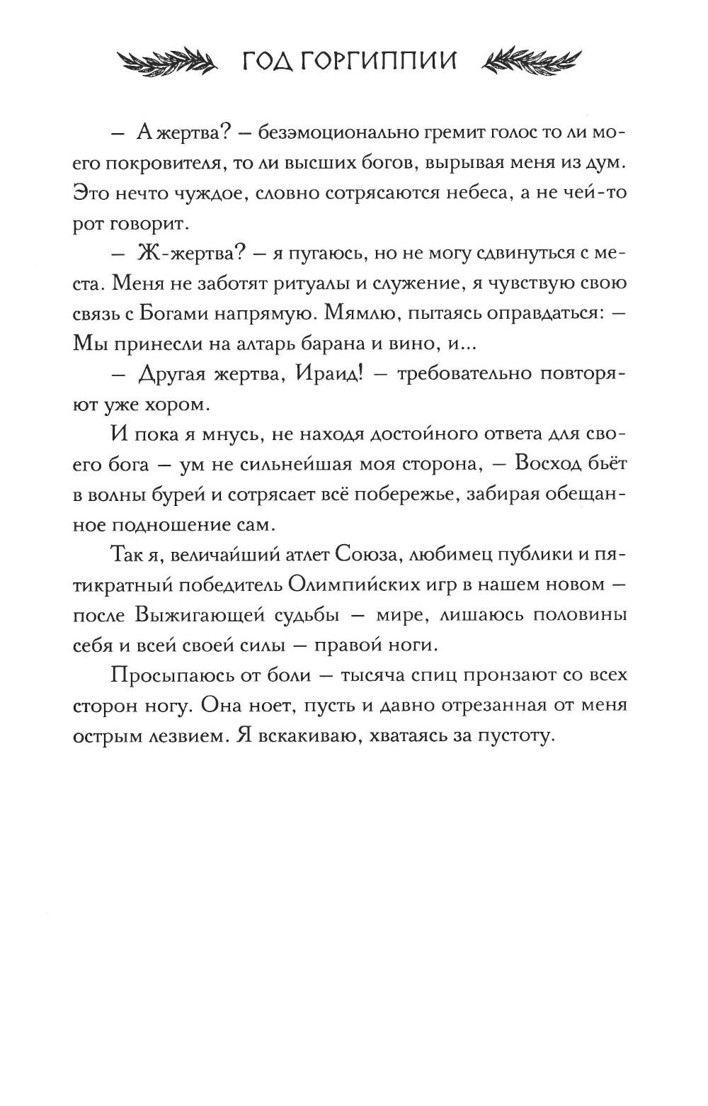 После климатической катастрофы античный мир возродился на берегу Чёрного моря. Царевна Ксанфа приезжает в Горгиппию, чтобы принять участие в Олимпийских играх, которые проводятся во славу Богов - Солнца, Земли и Моря. Её учителем становится бывший чемпион Ираид, который должен подготовить царевну к соревнованиям: несмотря на не самые выдающиеся успехи в атлетике, она должна стать победительницей. Однако в борьбу за выигрыш врывается Шамсия - кочевница из степных земель. Им придётся не только сражаться друг с другом, но и отстоять судьбу целого мира, который уничтожат Боги в случае Игр не по их правилам. Что ждёт героев - победа или смерть всего человечества?| Издательство | ИД КомпасГид |