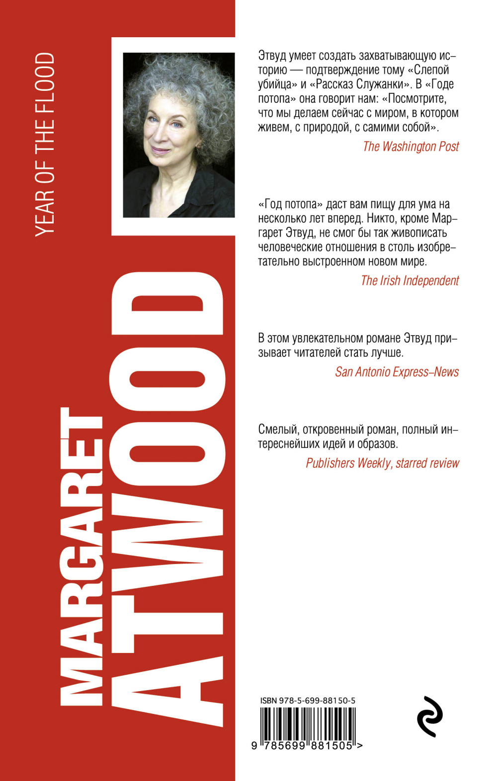 Книги Маргарет Этвуд неизменно отличаются поразительной оригинальностью и глубиной. Они неоднократно были отмечены престижными литературными наградами, в числе которых Букеровская премия (за «Слепого убийцу»), Премия Артура Кларка (за «Рассказ Служанки»), Литературная премия генерал-губернатора Канады, итальянская «Премио монделло» и другие. «Год потопа» - это амбициозная панорама мира, стоявшего на грани рукотворной катастрофы - и шагнувшего за эту грань; мира, где правит бал всемогущая генная инженерия, и лишь вертоградари в своем саду пытаются сохранить многообразие живой природы; мира, в котором девушке-меховушке прямая дорога в ночной клуб «Чешуйки» - излюбленное злачное заведение как крутых ребят из Отстойника, так и воротил из охраняемых поселков Корпораций.