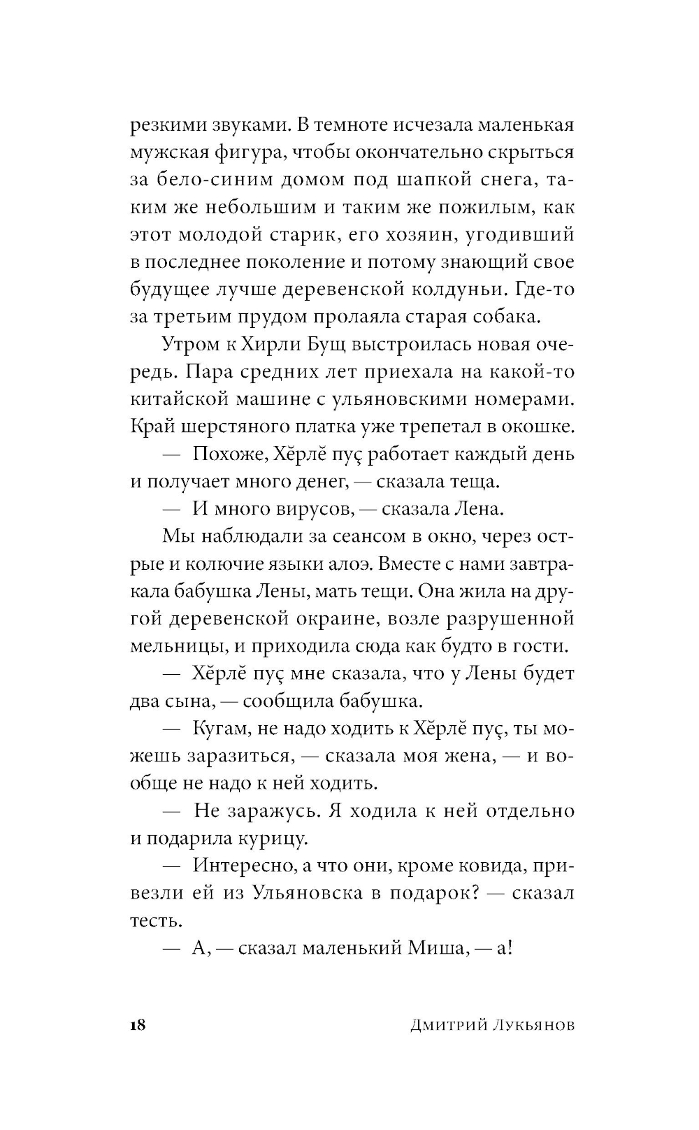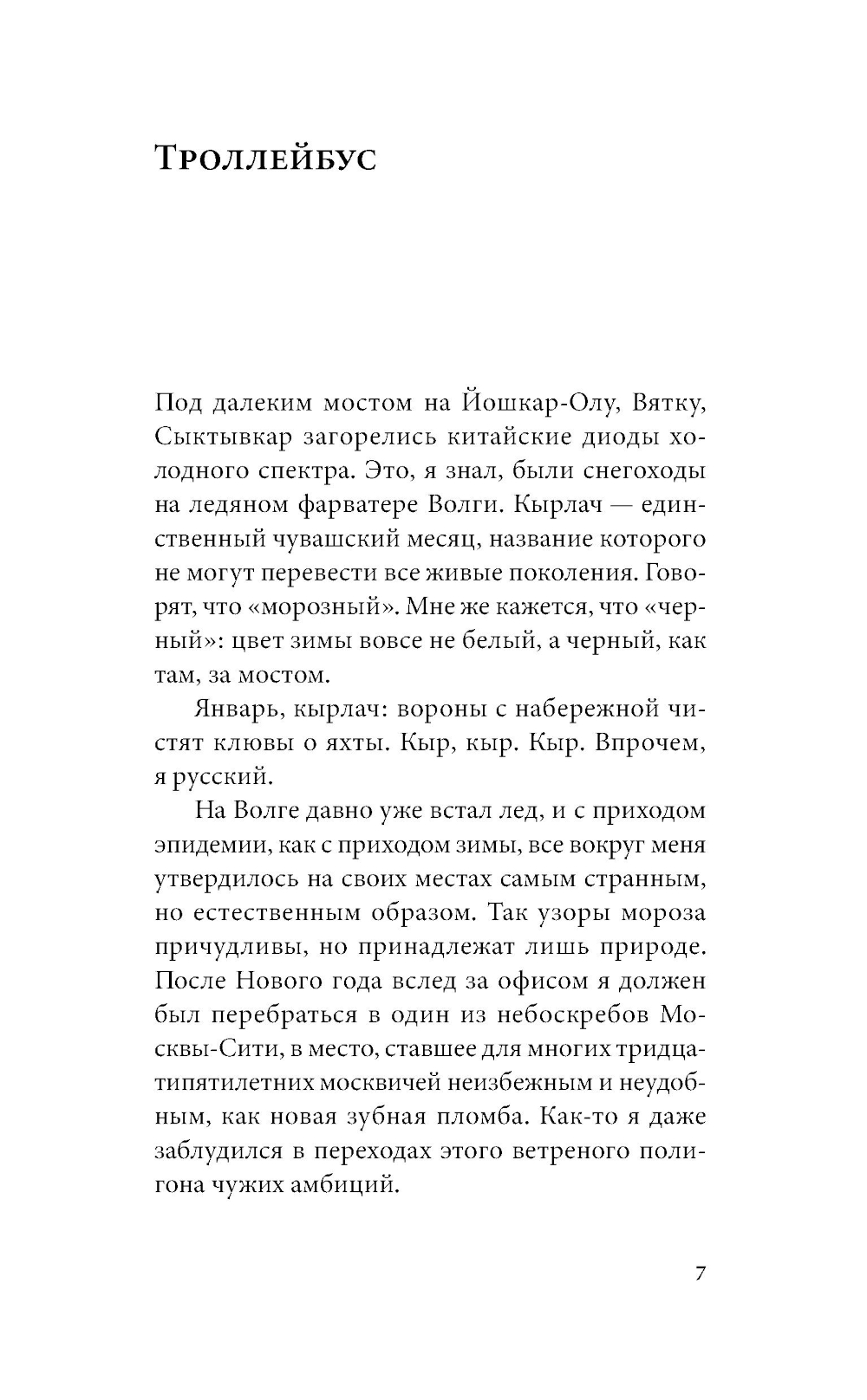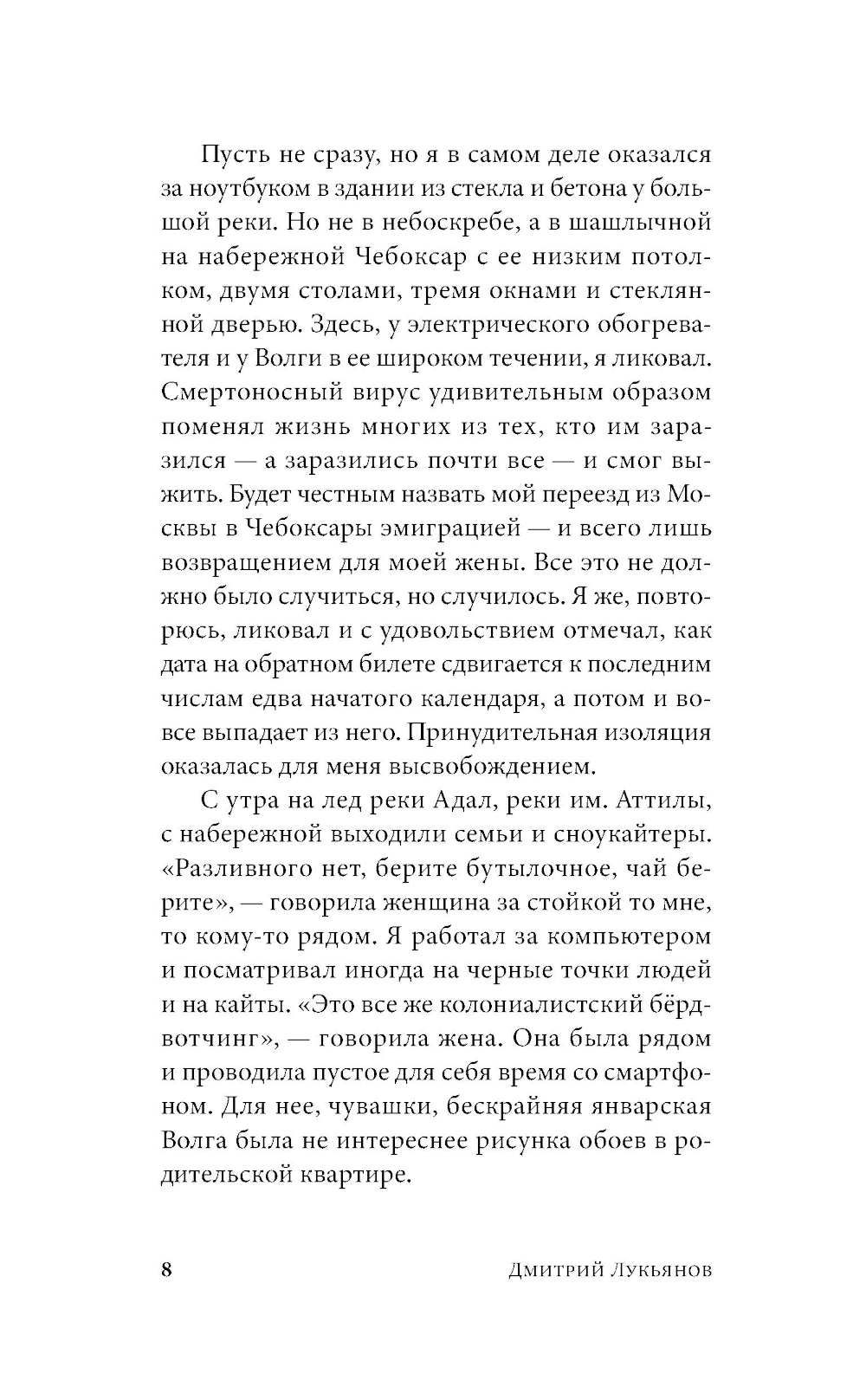 С наступлением пандемии главный герой переезжает из Москвы в Чебоксары к родственникам жены, где открывает для себя неразгаданный чувашский мир, скрытый от чужих под вуалью глобализации. Проводником становится его маленький сын, понимающий и одновременно не понимающий родные для себя русский и чувашский языки. Герой пытается объяснить истоки семейных отношений через рациональность и ментальность, но терпит неудачу, которая делает его счастливым. За неспешной историей, полной забавных диалогов и парадоксальных встреч, стоит сложность непережитого национального модерна с прозрачным флером прозы Бротигана.| Издательство | Альпина нон-фикшн |