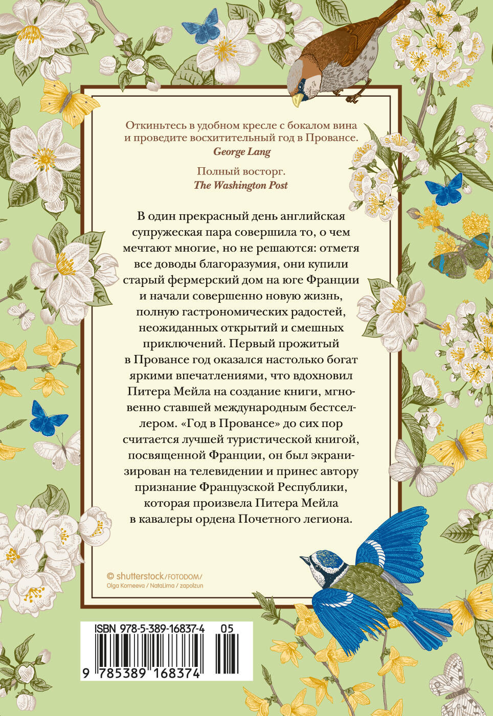 В один прекрасный день английская супружеская пара совершила то, о чем мечтают многие, но не решаются: отметя все доводы благоразумия, они купили старый фермерский дом на юге Франции и начали совершенно новую жизнь, полную гастрономических радостей, неожиданных открытий и смешных приключений. Первый прожитый в Провансе год оказался настолько богат яркими впечатлениями, что вдохновил Питера Мейла на создание книги, мгновенно ставшей международным бестселлером. "Год в Провансе" до сих пор считается лучшей туристической книгой, посвященной Франции, он был экранизирован на телевидении и принес автору признание Французской Республики, которая произвела Питера Мейла в кавалеры ордена Почетного легиона.| Издательство | Азбука-Аттикус Издат.группа ООО |