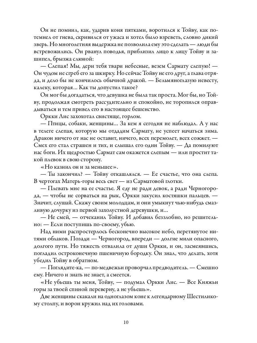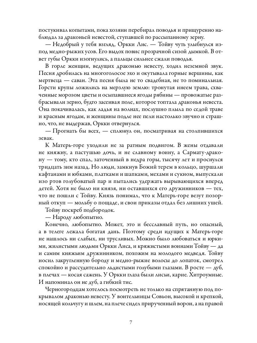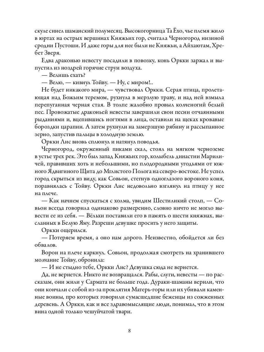 Старая сказка о древних обрядах и братоубийственной войне. Песня колдовской свирели. В Княжьих горах обитает чудовище - человек, превращенный в дракона тысячу лет назад. Он хитер и жаден, его чертоги полны сокровищ и пленных, каждый из которых не доживет до следующего года. Княжества платят змею дань, а его покой стережет грозный воин - предводитель каменной орды, чье имя гремит от южных низин до льдов севера. Вооруженный отряд везет дракону откуп: богатства и девушку, слепую Рацлаву, у которой нет ни красоты, ни особенного дара - лишь свирель, которая режет ее руки. Горные хребты, заснеженные пустоши, разбойники и колдуньи-оборотни - этот путь будет длинным…| Издательство | Т8 RUGRAM |