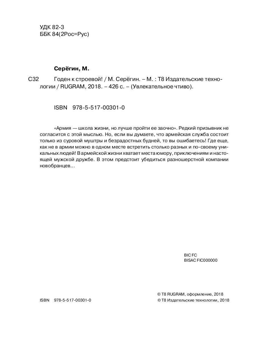 «Армия - школа жизни, но лучше пройти ее заочно». Редкий призывник не согласится с этой мыслью. Но, если вы думаете, что армейская служба состоит только из суровой муштры и безрадостных будней, то вы ошибаетесь! Где еще, как не в армии можно в одном месте встретить столько разных и по-своему уникальных людей! В армейской жизни хватает места юмору, приключениям и настоящей мужской дружбе. В этом предстоит убедиться разношерстной компании новобранцев...| Издательство | Т8 RUGRAM |