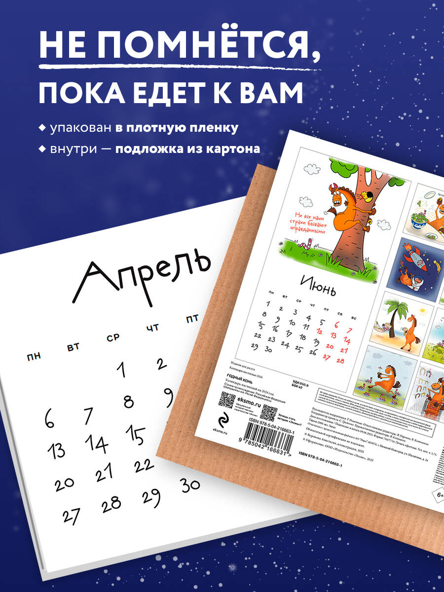 О серии: Наши настенные календари отличаются высоким качеством исполнения! Тщательно подобранные иллюстрации, напечатанные на глянцевой бумаге высочайшего качества, станут настоящим украшением дома, а в календарной сетке найдется место для ваших планов: большие клетки позволят делать записи и организовать свой год! В календаре также отмечены все государственные праздники. О календаре: Календарь с 12 забавными иллюстрациями и остроумными сюжетами с символом года. Для кого: Для всех поклонников лошадей. Технические параметры: Тип календаря - настенный перекидной. Год - 2026. Календарная сетка - с разбивкой по месяцам. Вид скрепления - скрепка. Ширина - 30 см. Высота - 30 см. Внутренний блок - мелованная бумага 115 г/м2. Подложка - плотный гофрокартон для поддержания формы. Индивидуальная упаковка в плотный целлофановый пакет.| Издательство | ООО "Издательство "Эксмо" |