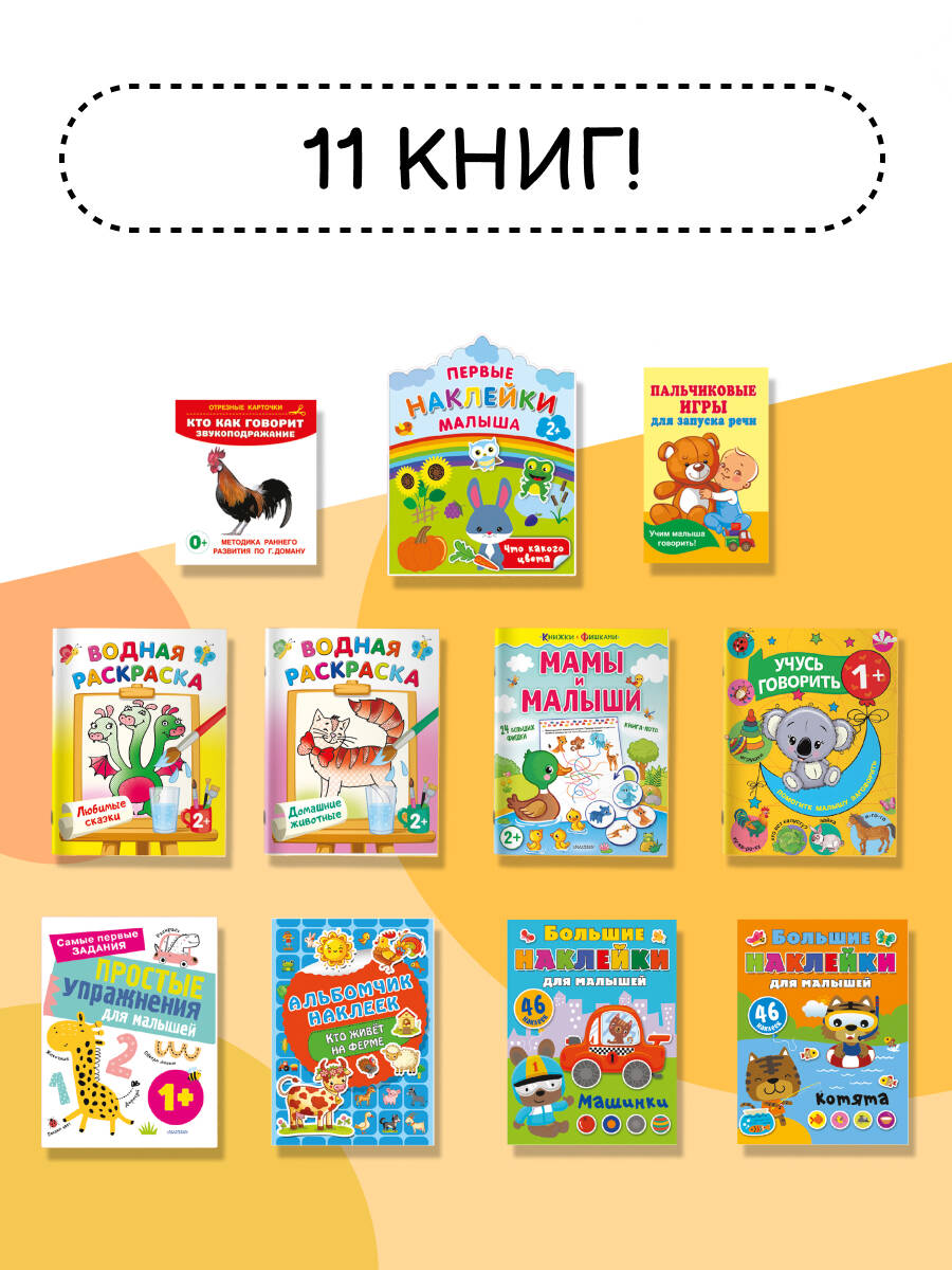 Подарочный комплект «Годовой курс занятий 1+. Набор из 11 книг» включает в себя красивые и полезные книги, созданные специально для самых маленьких. Малыша ждут книги с наклейками «Котята», «Машинки» и «Кто живёт на ферме», книжка необычной фигурной формы «Что какого цвета», книга-лото с фишками «Мамы и малыши», водные раскраски «Домашние животные» и «Любимые сказки», отрезные карточки по методике Гленна Домана, книги для развития речи «Учусь говорить» и «Пальчиковые игры для запуска речи», а также книга с эффективными заданиями «Простые упражнения для малышей». Будущий почемучка выучит названия животных, познакомится со сказочными героями, научится отличать разные виды транспорта, запомнит цвета. Малыш с удовольствием будет рассматривать картинки, учить первые слова, рисовать, клеить, собирать пазлы и просто играть. Все задания разработаны авторским коллективом опытных педагогов с многолетним стажем работы.| Издательство | Издательство "АСТ" |