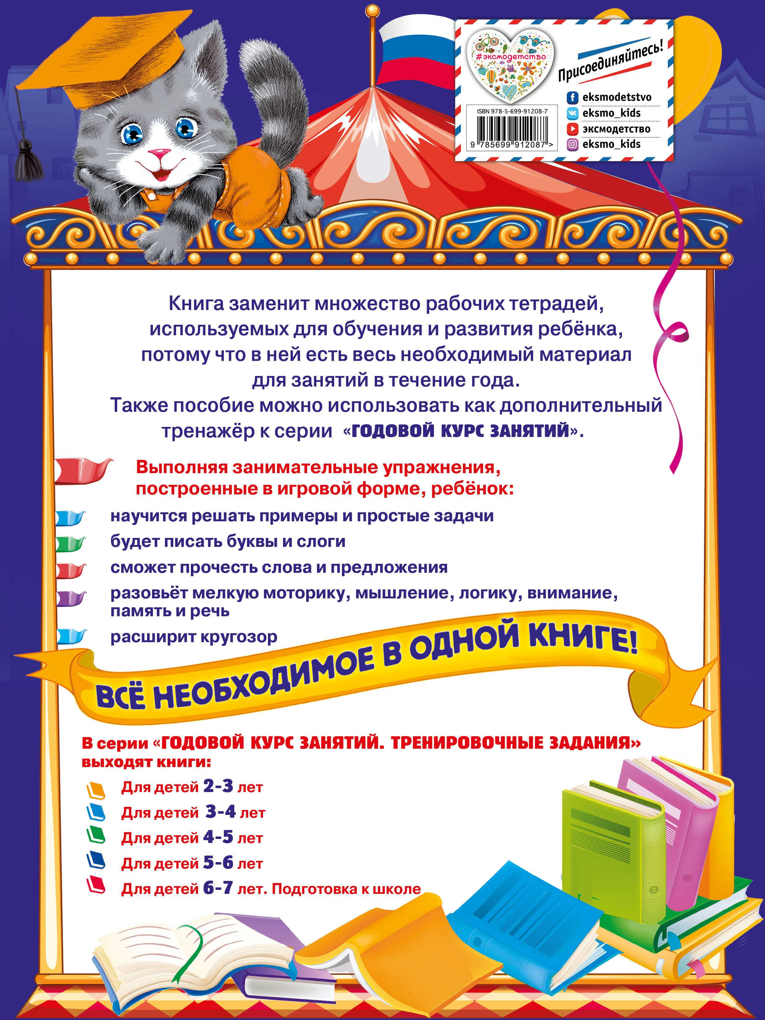 Годовой курс тренировочных занятий заменит множество рабочих тетрадей, необходимых для интеллектуального развития малыша в течение года. Выполняя игровые занимательные упражнения вместе со взрослыми, ребенок получит необходимый для своего возраста объем знаний, навыков и умений, научится решать примеры и простые задачи, писать элементы письменных букв, читать слова и предложения, познакомится с видами транспорта, разовьет память, внимание, речь, мышление и воображение. Кроме того, книга поможет родителям привить малышу интерес к обучению и оценить уровень готовности к школе.| Издательство | ООО "Издательство "Эксмо" |