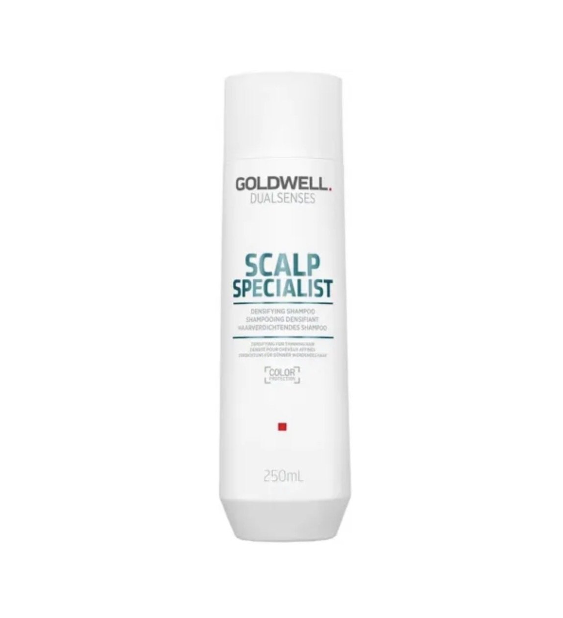 Goldwell Dualsenses Scalp Specialist Densifying Shampoo - укрепляющий шампунь для волос 250 ml, разработанный для тонких и ослабленных волос, который освежает кожу головы, активирует корни и создаёт ощущение более плотной, густой и жизненной структуры волос без утяжеления; формула с комплексом microPROtec, пантенолом и кофеином способствует укреплению волос и улучшению их внешнего вида, делая уход ежедневным и эффективным.
