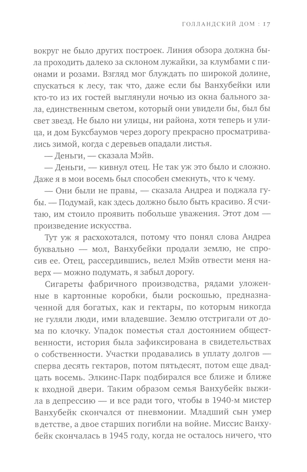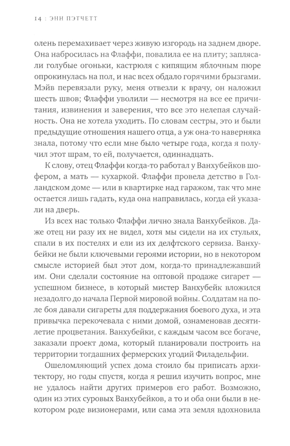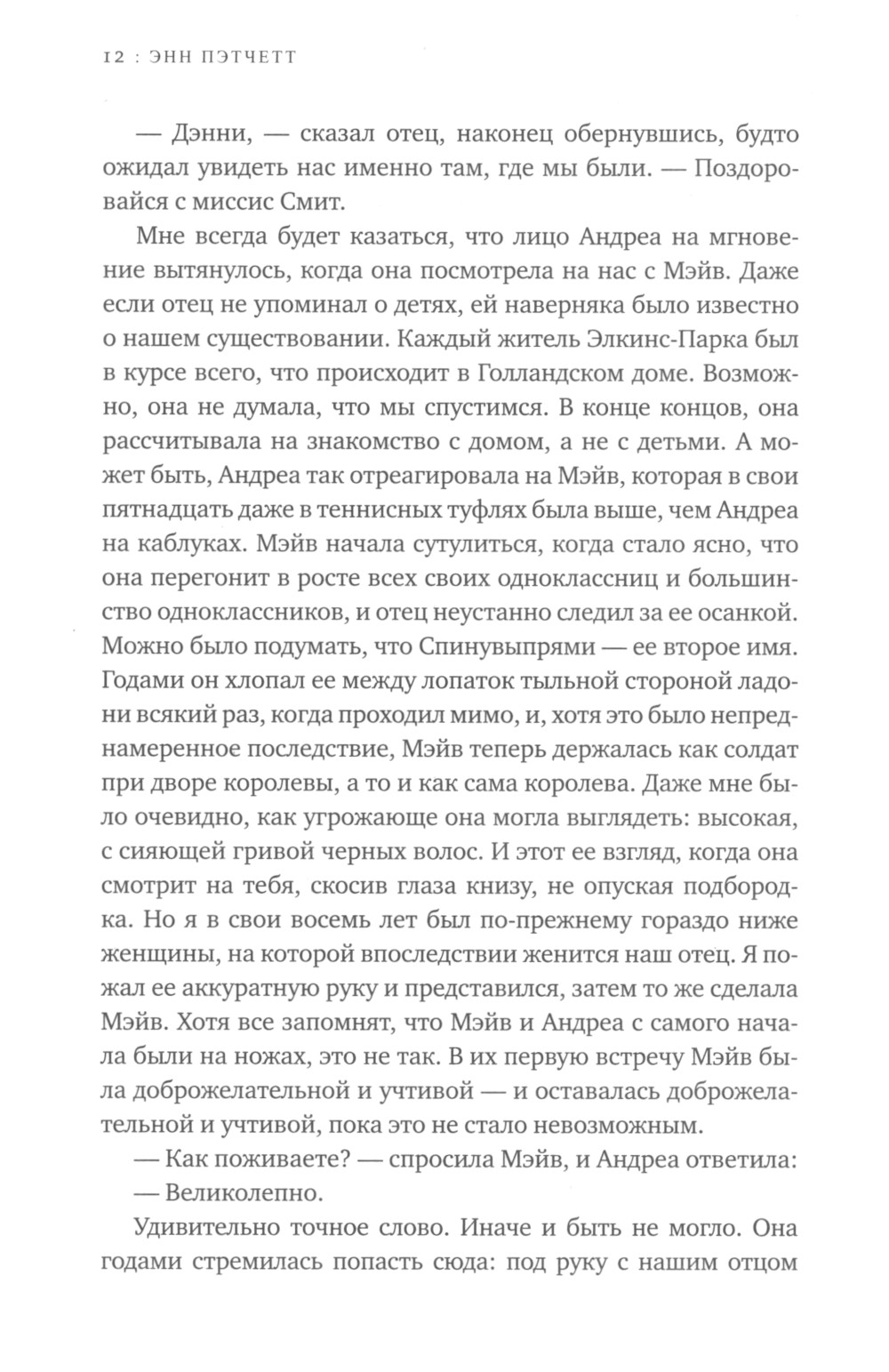 Этот роман Энн Пэтчетт напоминает сказку братьев Гримм, разросшуюся до масштабов семейного эпоса. История главных героев, Дэнни Конроя и его сестры Мэйв, охватывает всю вторую половину XX века, а их судьбы оказываются роковым образом переплетены с Голландским домом - особняком на востоке Пенсильвании, когда-то принадлежавшим разорившейся династии нидерландских магнатов Ванхубейков. Сам по себе Голландский дом не населен призраками, но каждый, кто переступает его порог, в каком-то смысле становится призраком дома - куда бы он потом ни отправился, где бы впоследствии ни жил, повсюду носит с собой этот образ. У Дэнни и Мэйв только это и есть: безвременно ушедший из жизни отец, давным-давно превратившаяся в воспоминание мать, будто бы вышедшая из ночного кошмара мачеха и зловещий фамильный особняк. А также взрослая жизнь, которая все никак не начнется: проклятие детства, печать сиротства, невозможность разорвать однажды сформировавшиеся узы. «Голландский дом» - история о победе любви над злом. Победе, замешенной на потерях и во многом неочевидной, потому что в конечном счете читателю предстоит разобраться самому, на чьей он стороне и был ли здесь злодей. И если был - то кто?| Издательство | Синдбад |