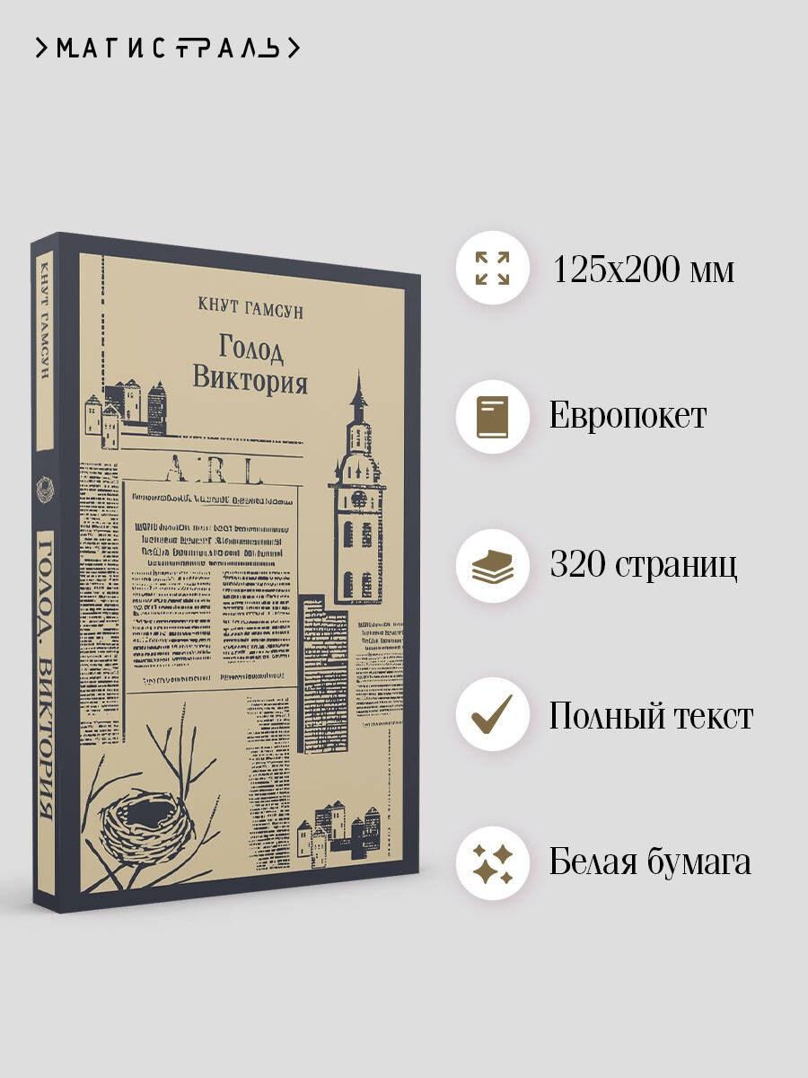 Кнут Гамсун - легендарный норвежский писатель, лауреат Нобелевской премии по литературе. Гамсун был одним из самых популярных в мире драматургов модернизма, неоднократно переводился и был очень известен в России. «Голод» - во многом автобиографичный роман, принесший автору мировую славу. Страшная в своей простоте история молодого непризнанного писателя, день за днем балансирующего на грани голодной смерти. Реальность и причудливые, болезненные фантазии переплетаются в его сознании, мучительно переживающем несоответствие между идеальным и материальным миром… «Виктория» - роман о борьбе человеческих чувств, емкий и драматичный сюжет которого повествует о глубокой, мучительной и невозможной любви двух людей из разных сословий - сына мельника Юханнеса и дочери сельского помещика Виктории.| Издательство | ООО "Издательство "Эксмо" |