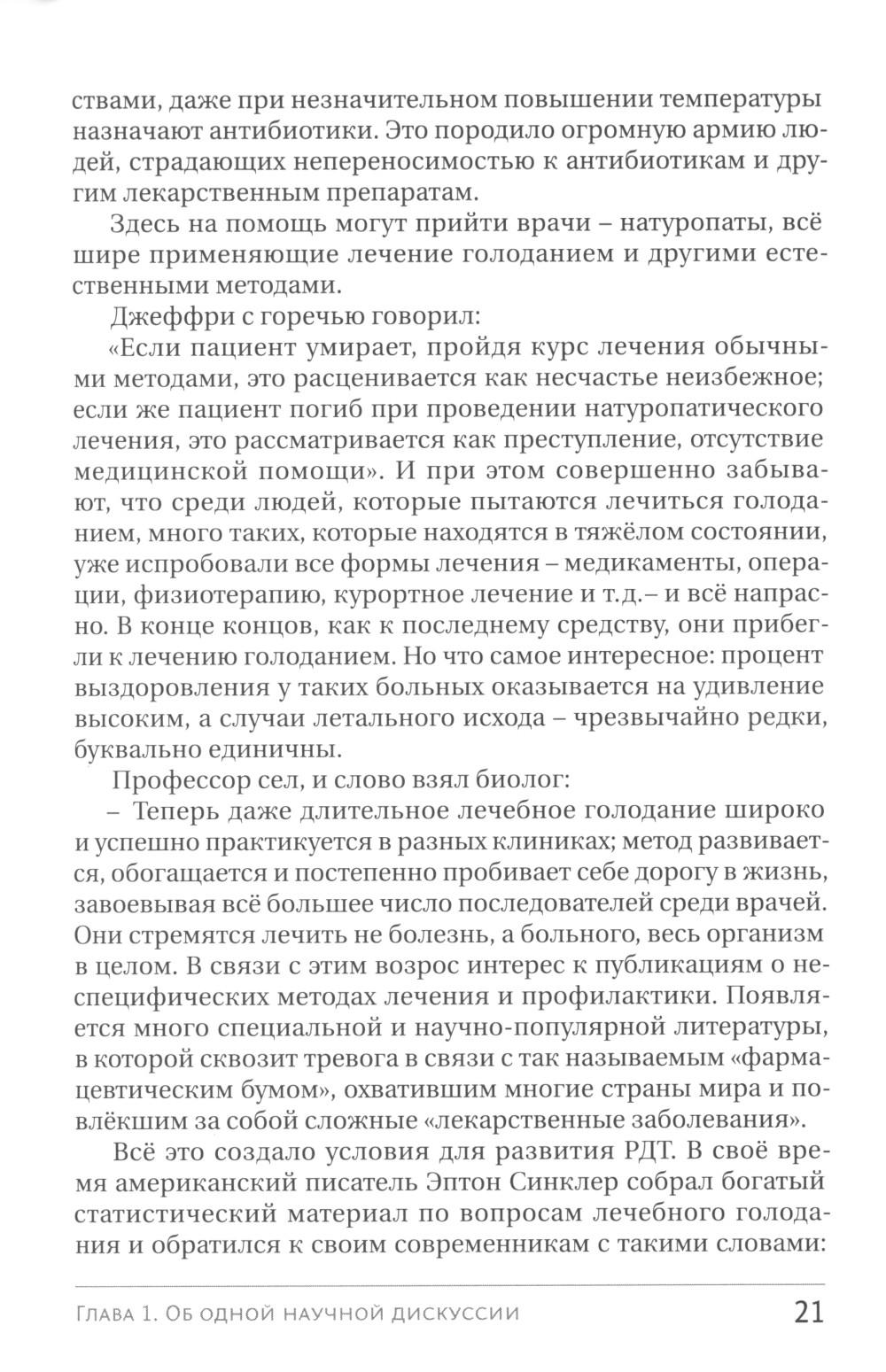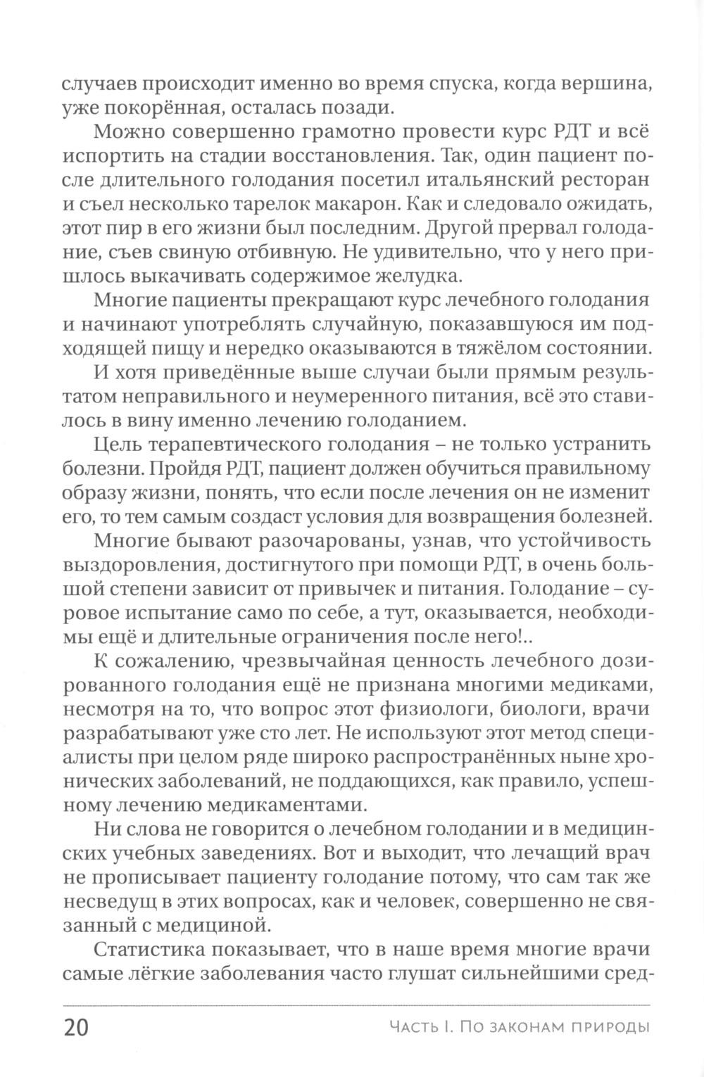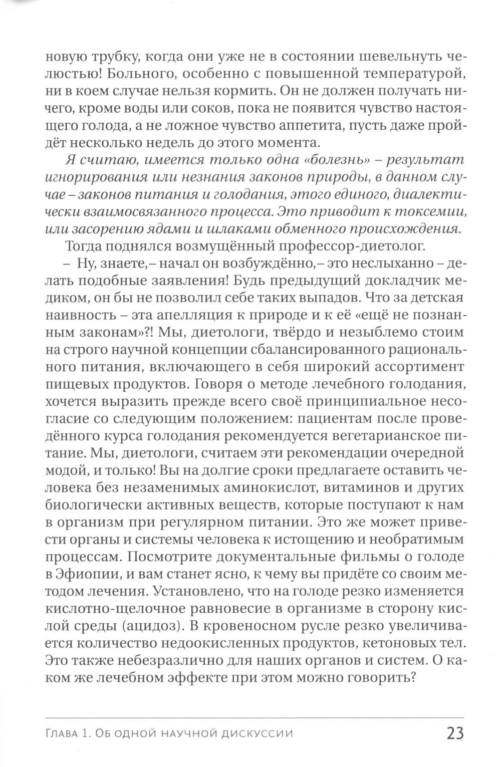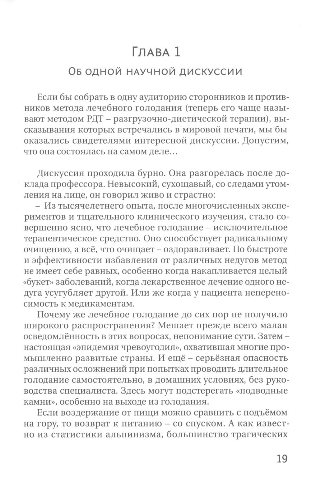 Голода принято бояться, избегать. Голод - это бедствие, вызываемое сильными социальными потрясениями, это лишения, мучения и смерти множества людей. Кажется совершенно немыслимым, что кто-то может голодать добровольно. Тем не менее это так! Автор этой книги - доктор медицинских наук Юрий Сергеевич Николаев - является основателем метода разгрузочно-диетической терапии (РДТ), называемого также лечебным голоданием. В Советском Союзе этим методом мог вылечиться любой желающий, просто придя на приём к своему терапевту. Многие больные бронхиальной астмой, гипертонией, язвой желудка, сахарным диабетом получали не рецепт на таблетки, а направление в ближайшую клинику РДТ. Результаты излечения болезней удивительно высоки и превосходят успехи всех других терапевтических методов. И сегодня у вас есть возможность вспомнить об этом уникальном опыте, совершив своеобразное путешествие во времени, узнать о связи РДТ с долгожительством, получить точные практические рекомендации по избавлению от хронических болезней, некоторые из которых считаются неизлечимыми (как болезнь Бехтерева). Прочитав эту настоящую азбуку лечебного голодания, вы измените ваш взгляд на собственный организм и по достоинству оцените русскую поговорку: «Голод - не тётка, а родная мать».| Издательство | Концептуал |
